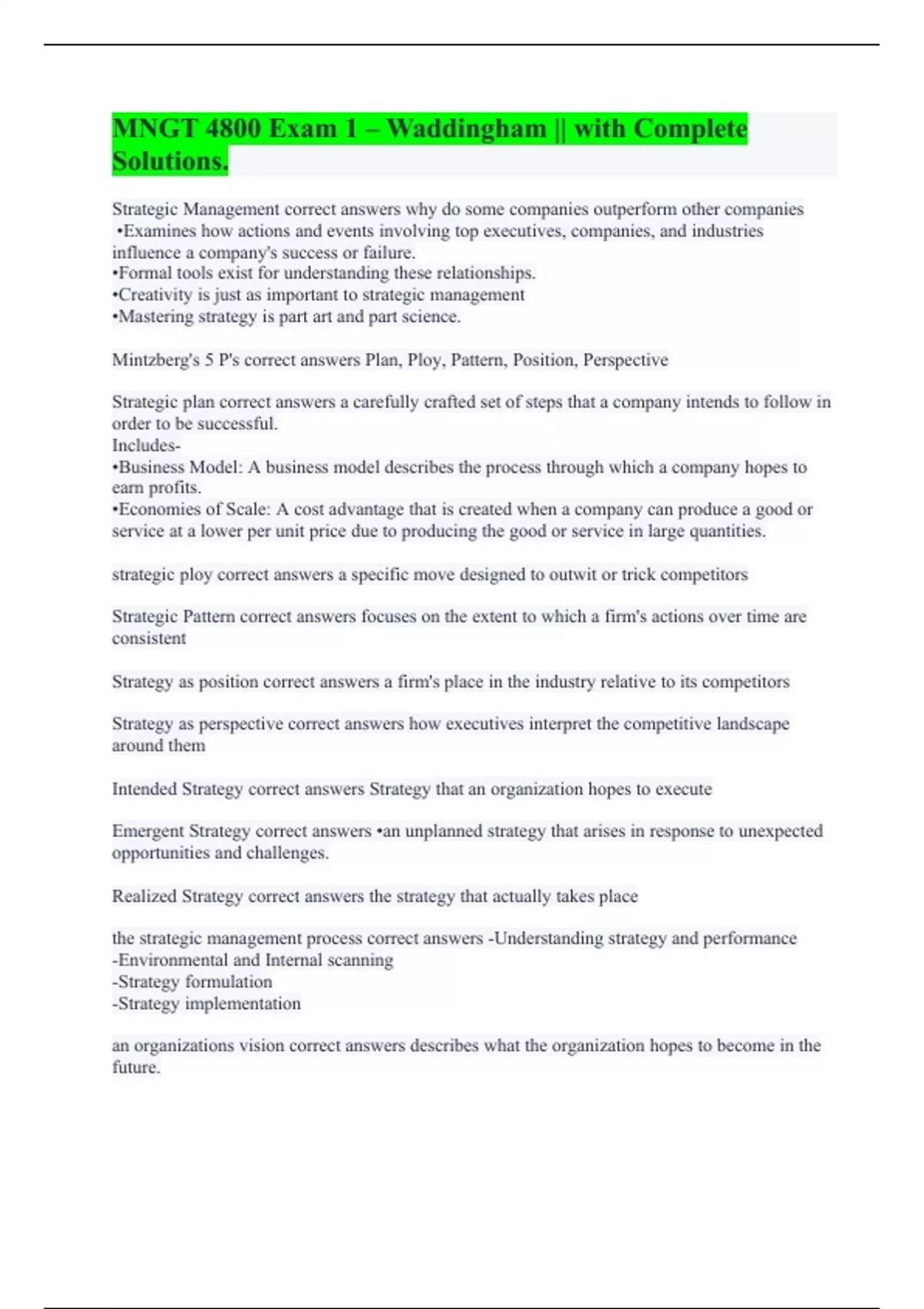 MNGT 4800 Exam 1 – Waddingham || with Complete Solutions.