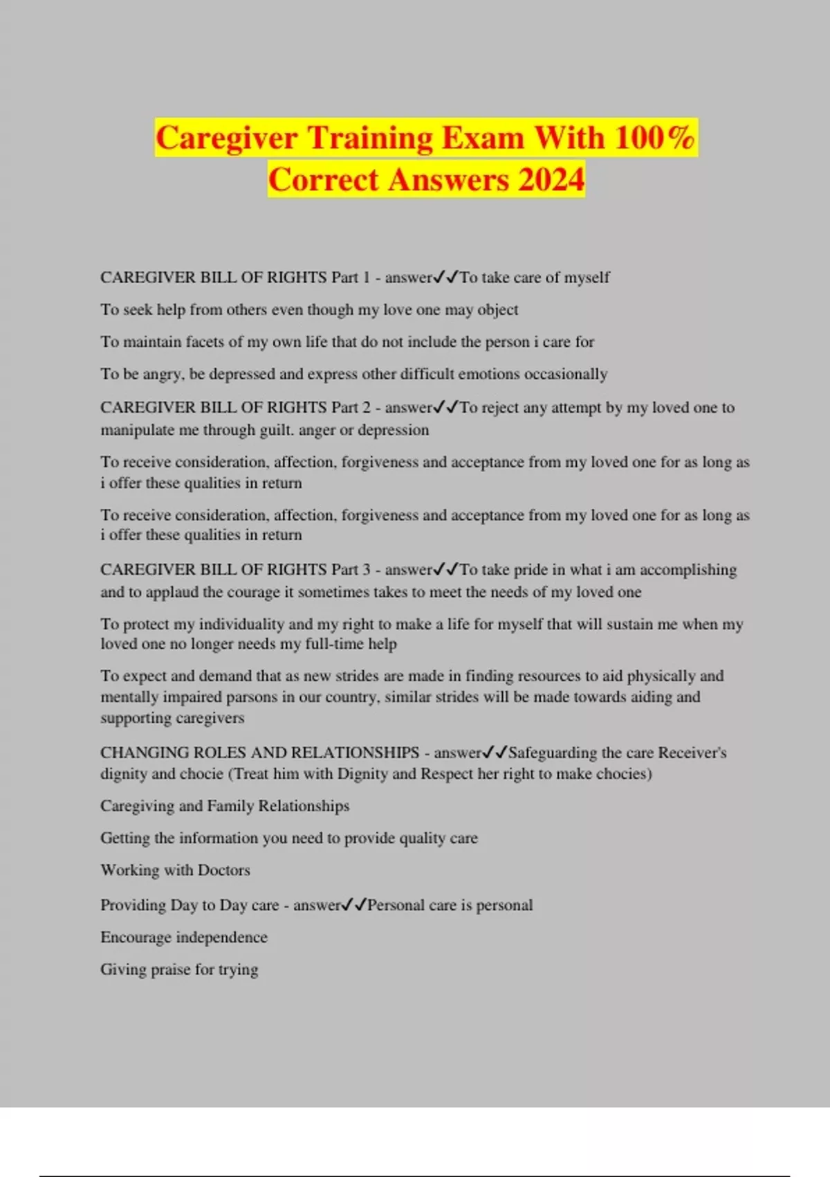 Caregiver Training Exam With 100% Correct Answers 2024