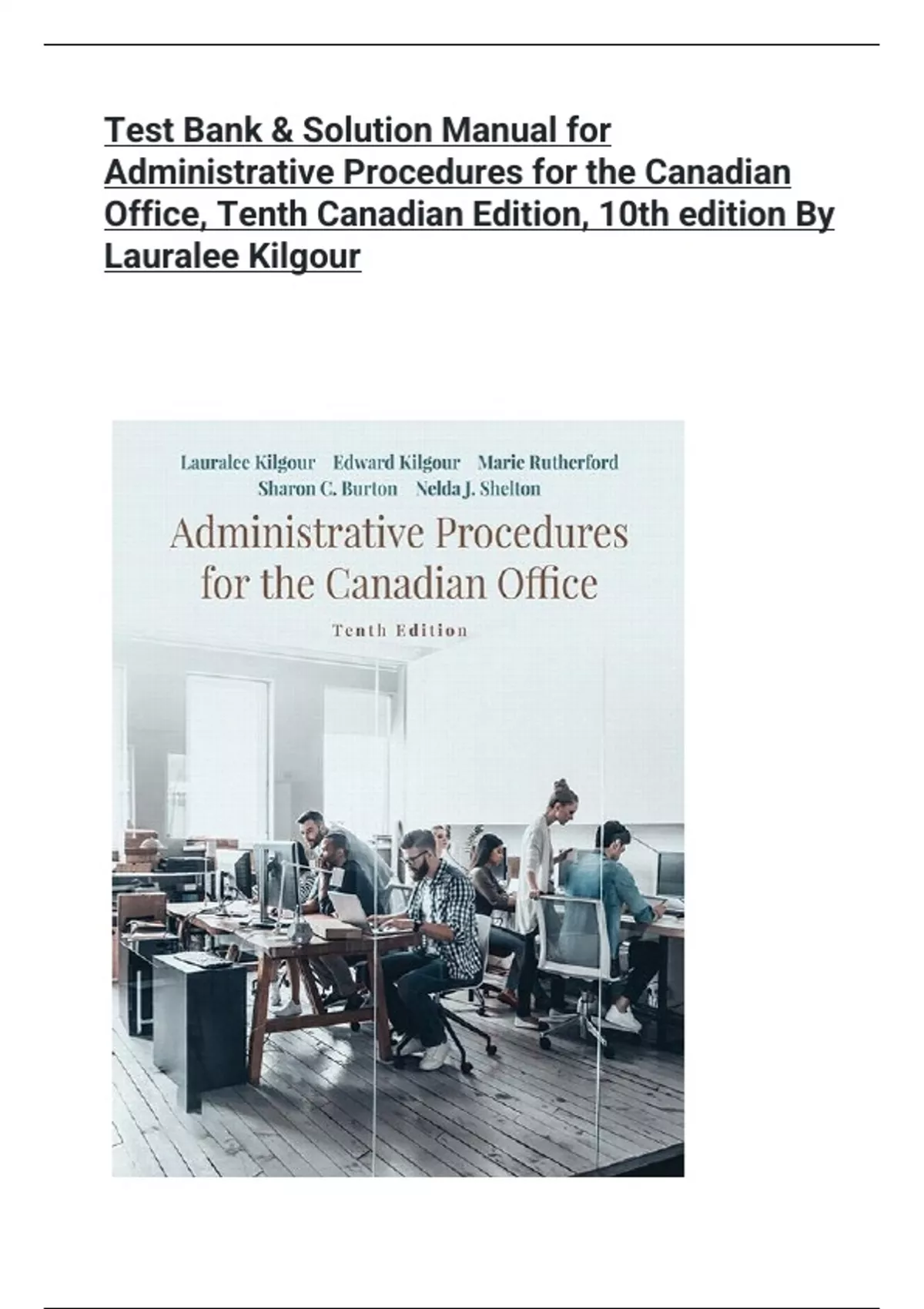 Test Bank & Solution Manual for Administrative Procedures for the Canadian Office, Tenth Canadian Edition, 10th edition By Lauralee Kilgour