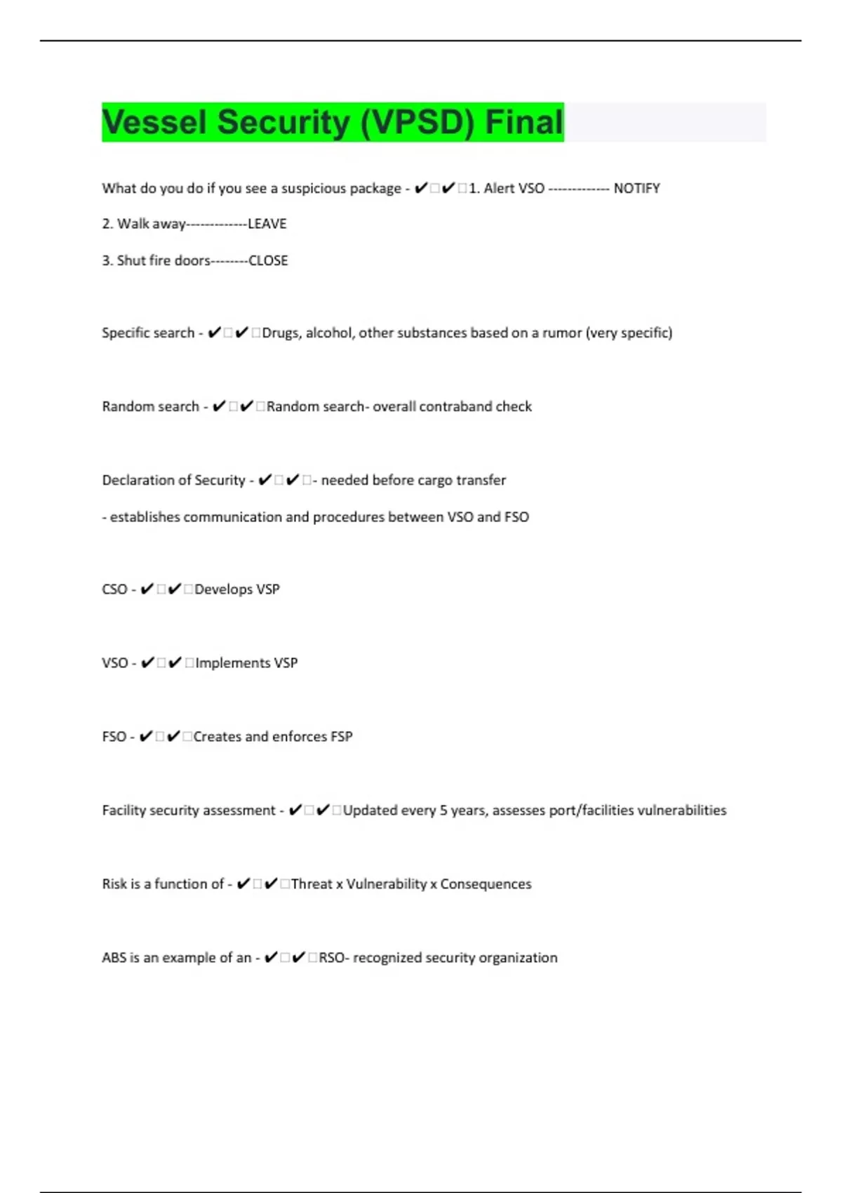Vessel Security (VPSD)40 Final Questions With Solutions