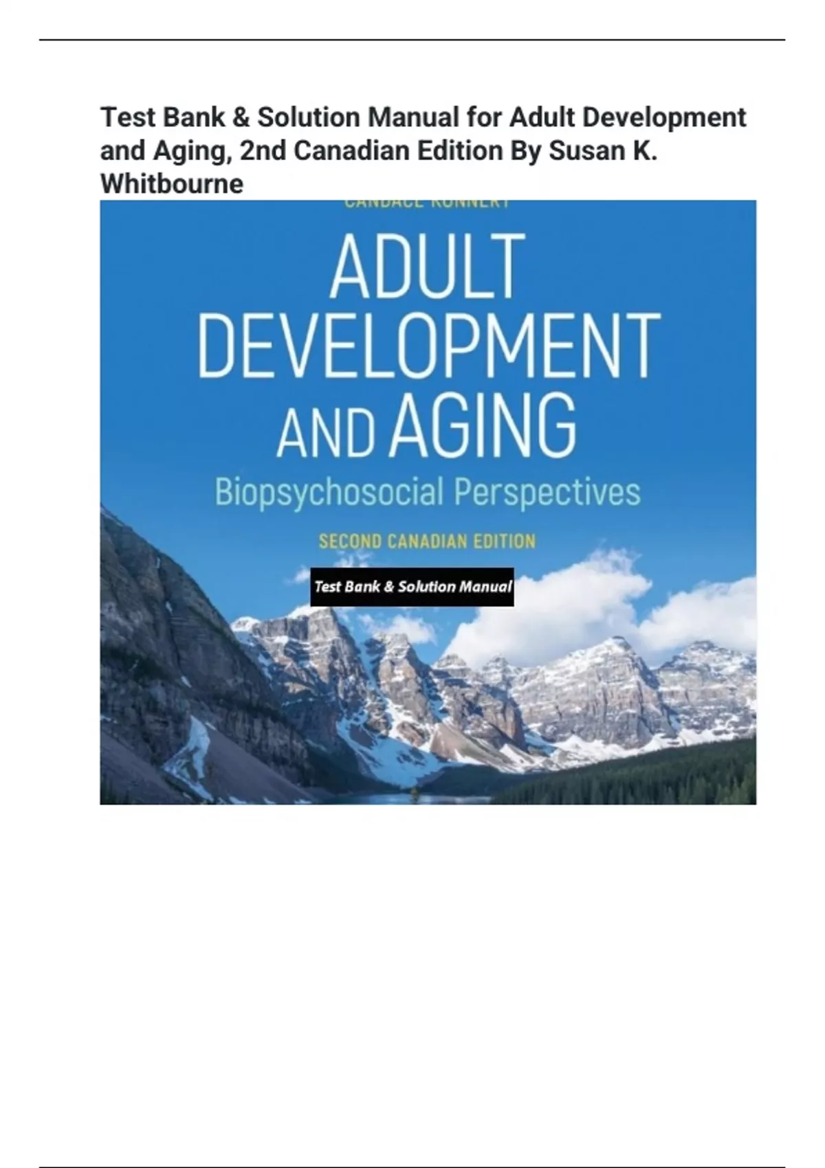 Test Bank & Solution Manual for Adult Development and Aging, 2nd Canadian Edition By Susan K. Whitbourne