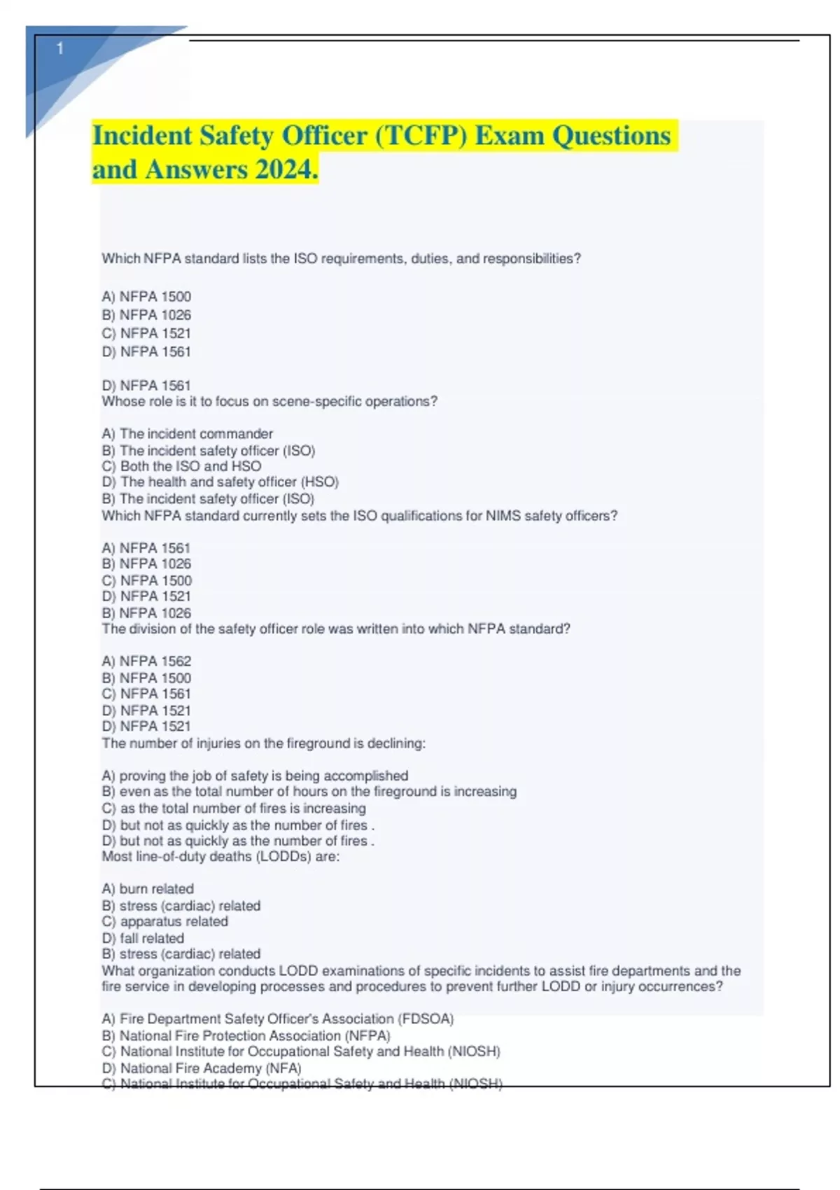 Incident Safety Officer (TCFP) Exam Questions and Answers 2024.