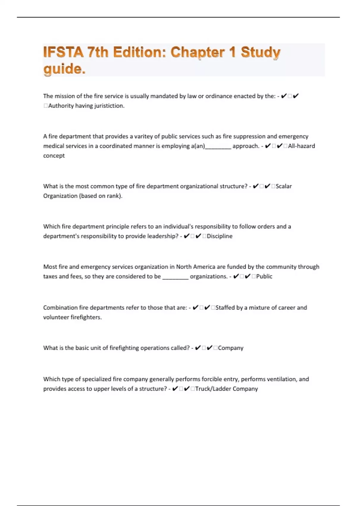 IFSTA 7th Edition: Chapter 1 Study guide. 65 Exam Questions With Complete Solutions