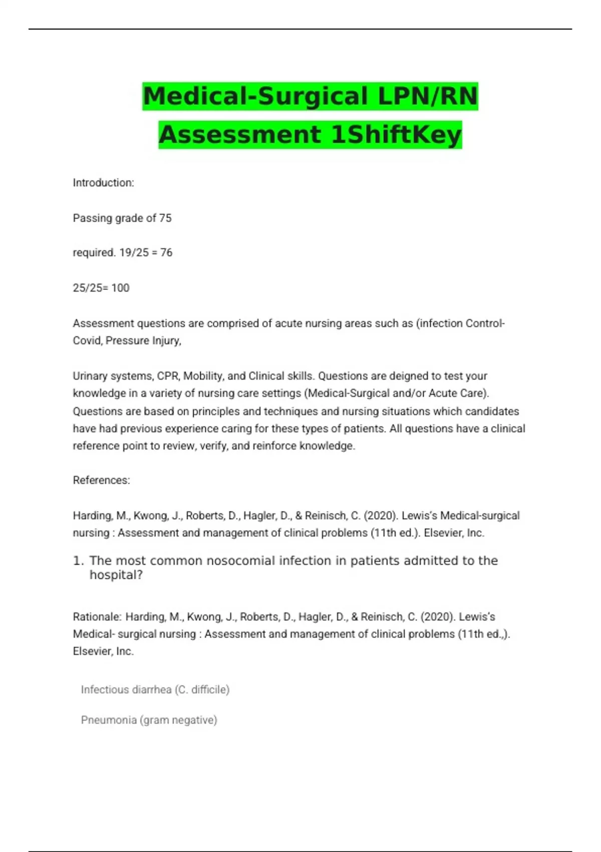 Medical-Surgical LPN/RN Assessment 1ShiftKey