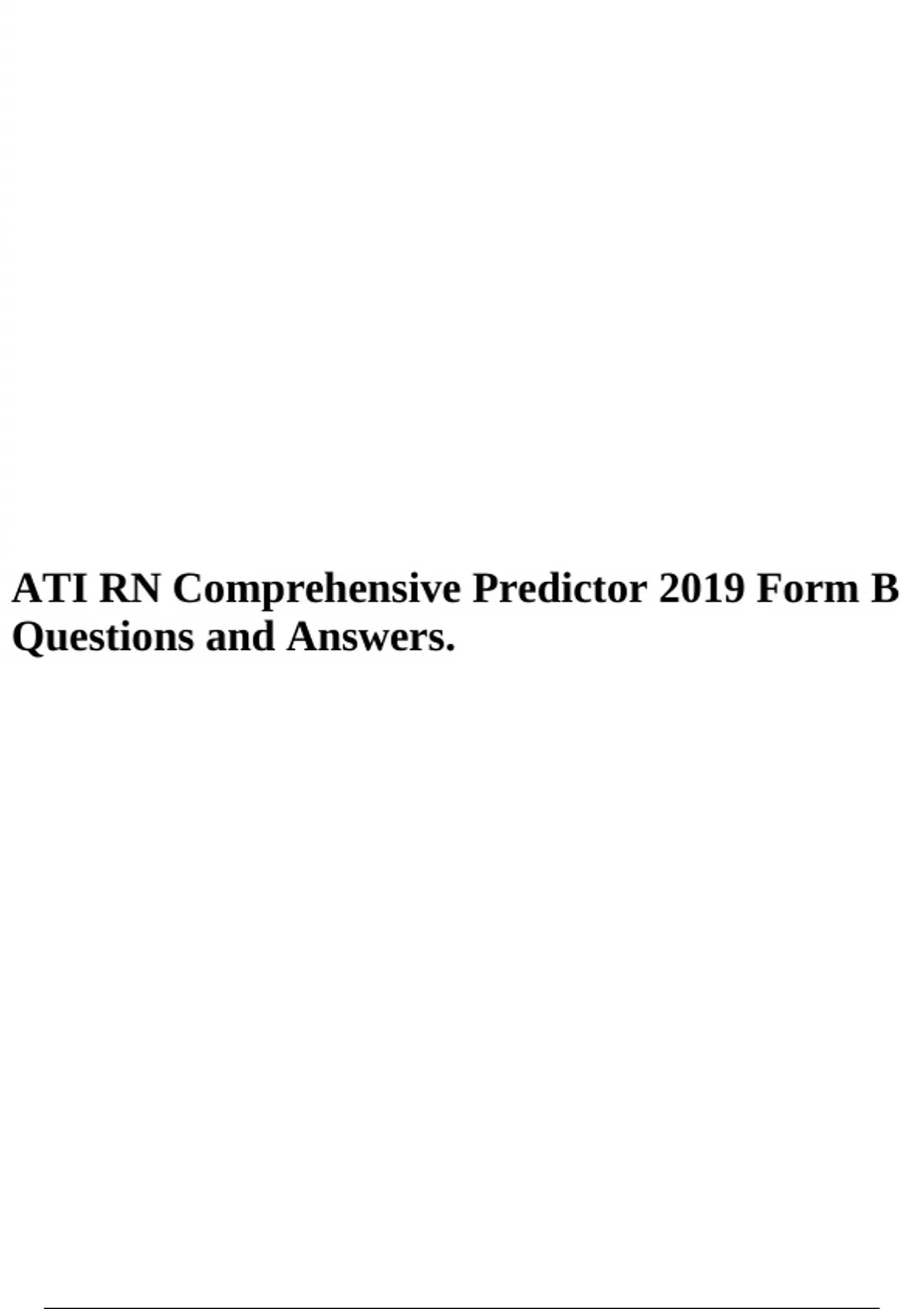 ATI RN Comprehensive Predictor 2019 Form B Questions and Answers.