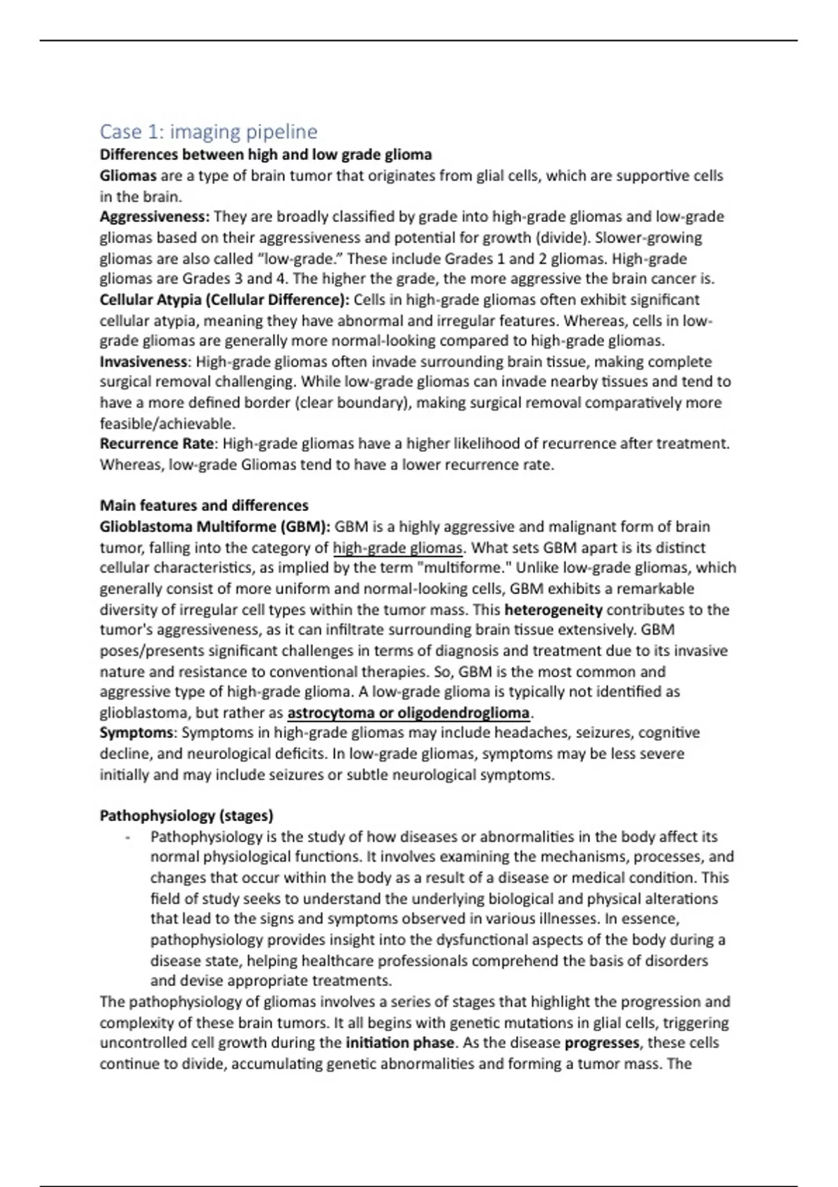 The pathophysiology of gliomas involves a series of stages that highlight the progression and