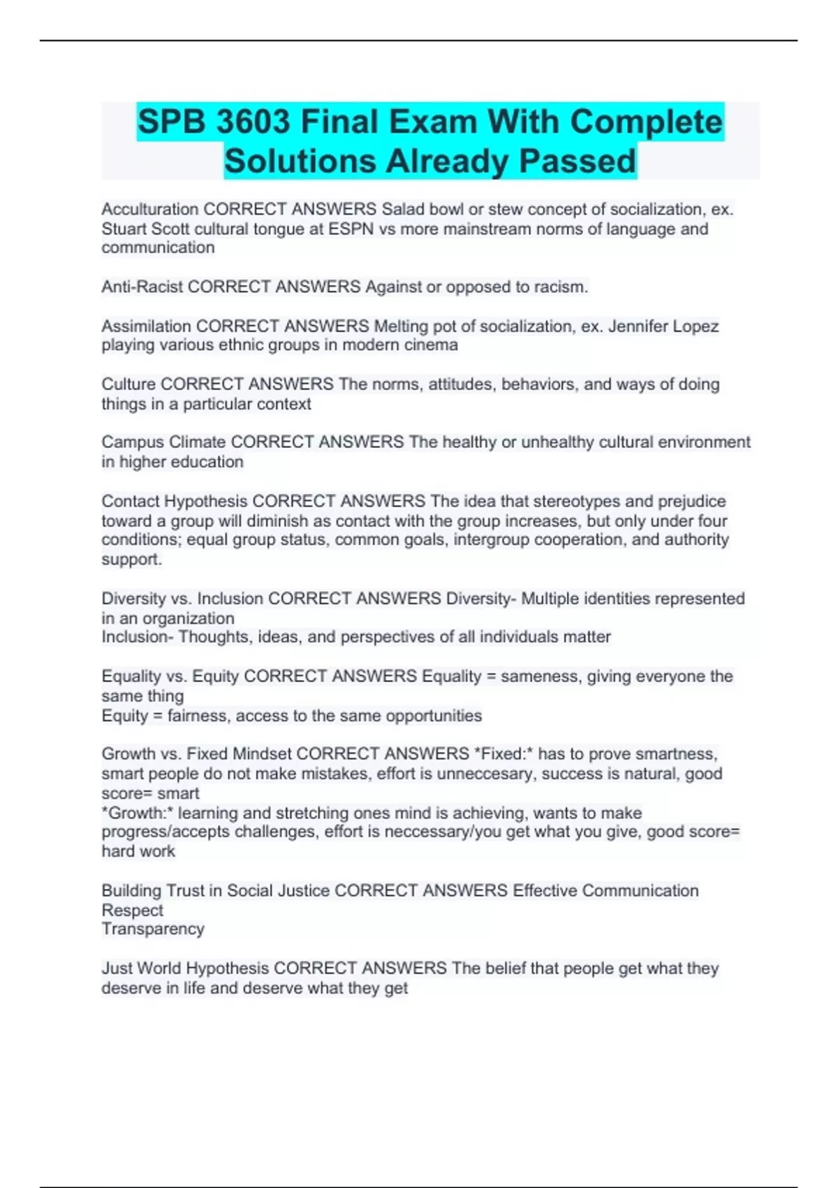 SPB 3603 Final Exam With Complete Solutions Already Passed