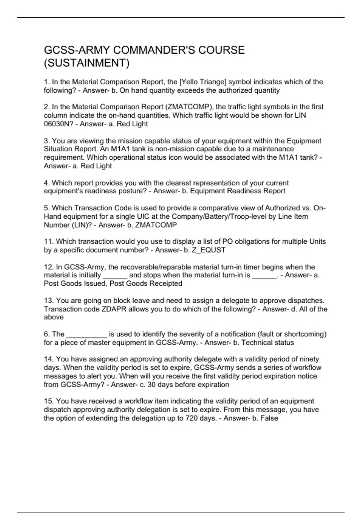 Exam (elaborations) GCSS-ARMY QUESTIONS AND ANSWERS 2 Exam (elaborations) GCSS ARMY PRACTICAL EXERCISE -CPE 3 Exam (elaborations) GCSS-ARMY COMMANDER S COURSE (SUSTAINMENT) 4 Exam (elaborations) GCSS-ARMY UNIT SUPPLY PRACTICAL EXERCISE 5 Exam (elabora
