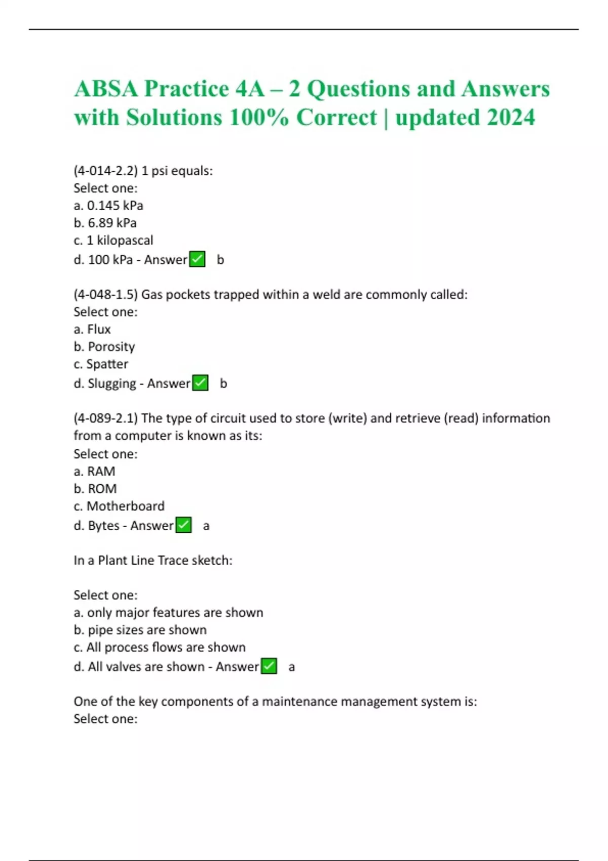 ABSA Practice 4A – 2 Questions and Answers with Solutions 100% Correct | updated 2024
