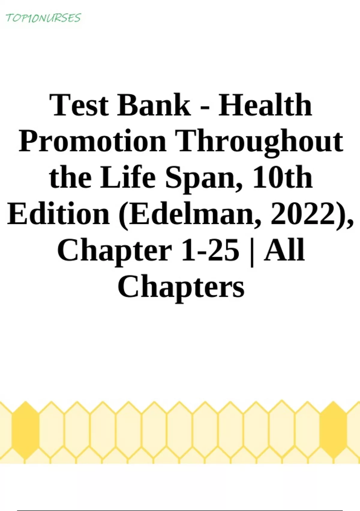Test Bank - Health Promotion Throughout the Life Span, 10th Edition (Edelman, 2022), Chapter 1-25 | UPDATED 2024