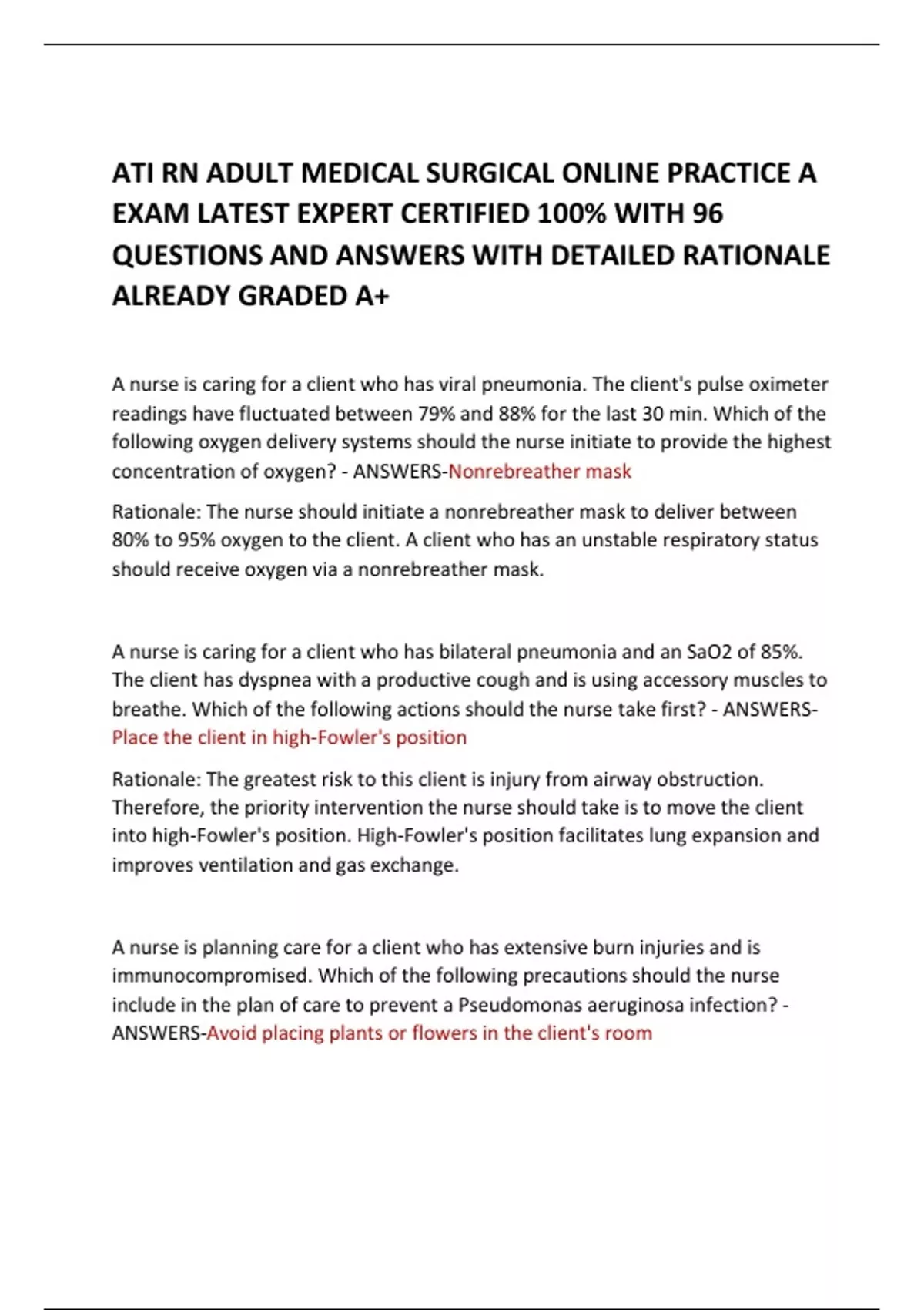ATI RN ADULT MEDICAL SURGICAL ONLINE PRACTICE A EXAM LATEST EXPERT CERTIFIED 100% WITH 96 QUESTIONS AND ANSWERS WITH DETAILED RATIONALE ALREADY GRADED A+