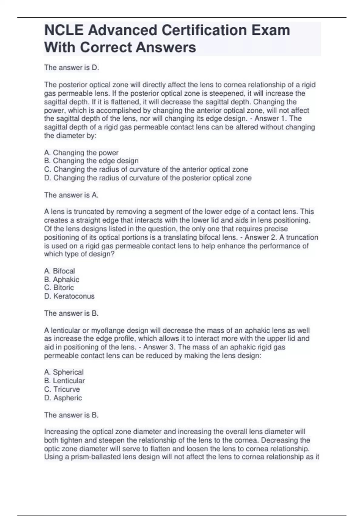 ncle advanced certification exam with correct answ