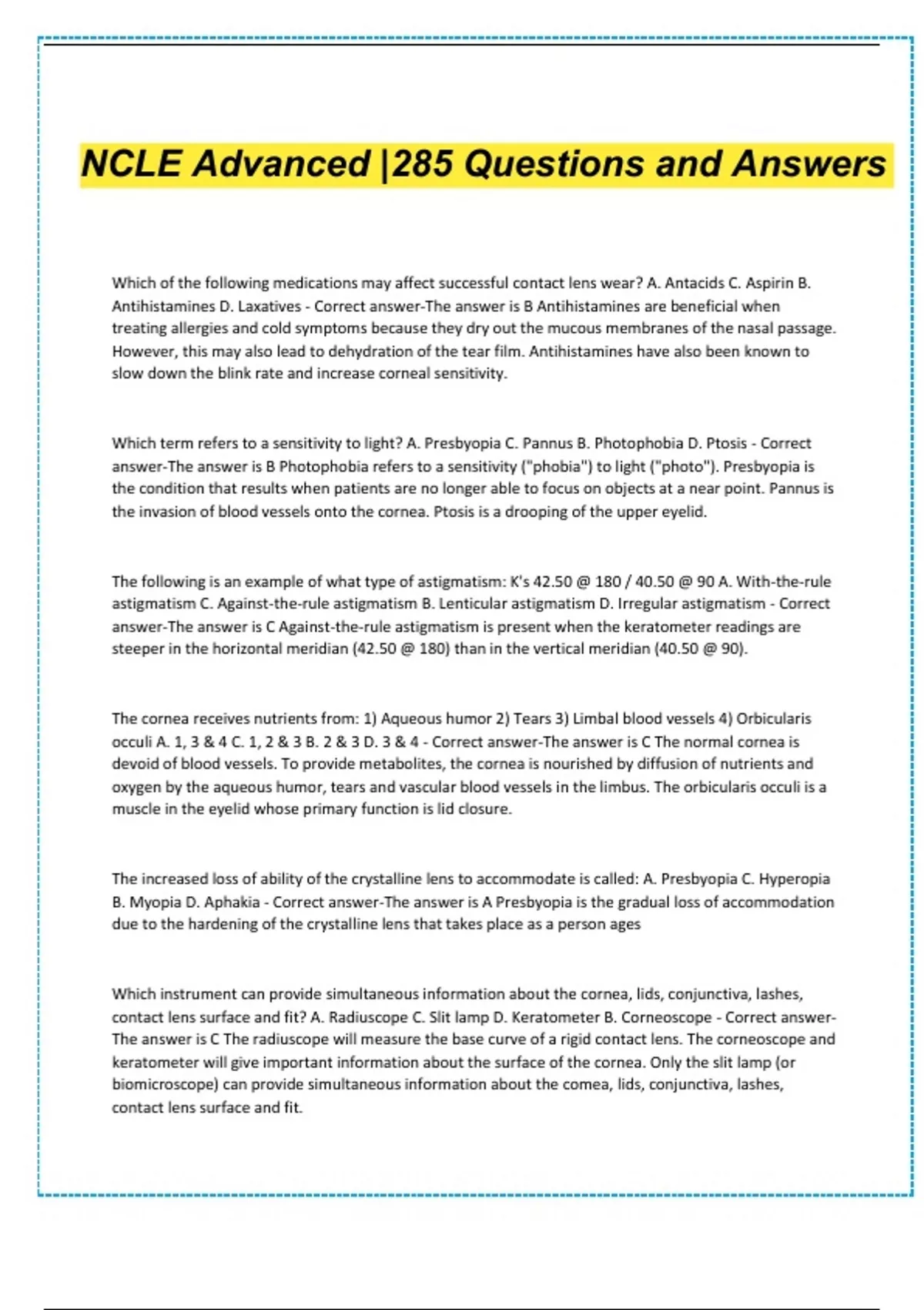 ncle advanced 285 questions and answers