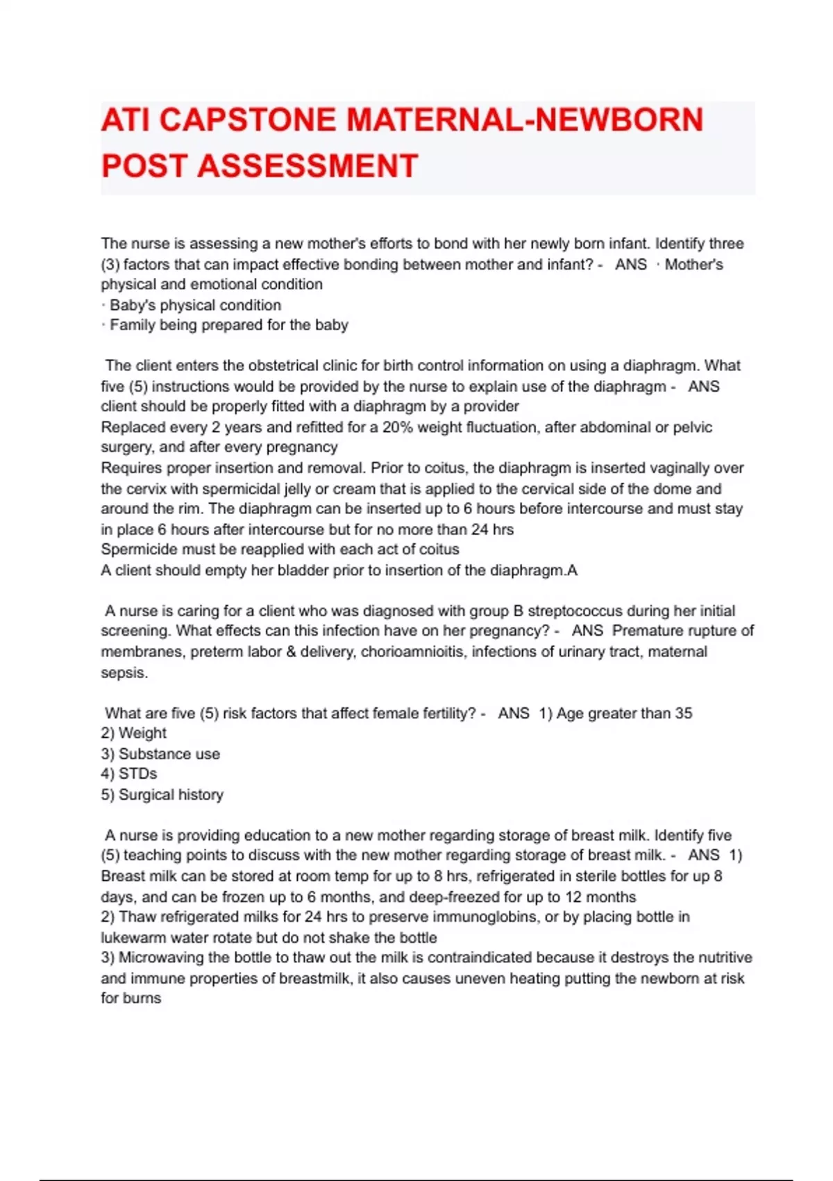 - ATI CAPSTONE MATERNAL-NEWBORN POST ASSESSMENT