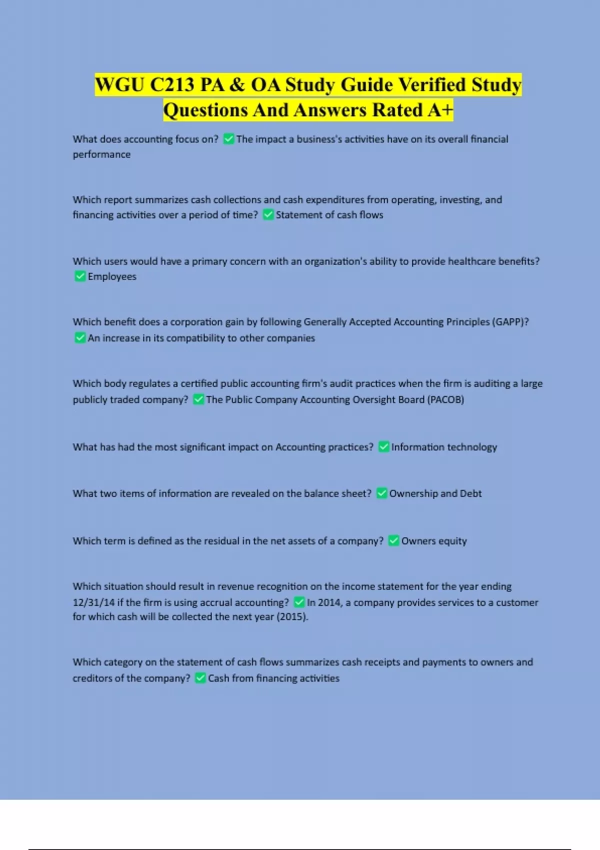 WGU C213 PA & OA Study Guide Verified Study Questions And Answers Rated A+