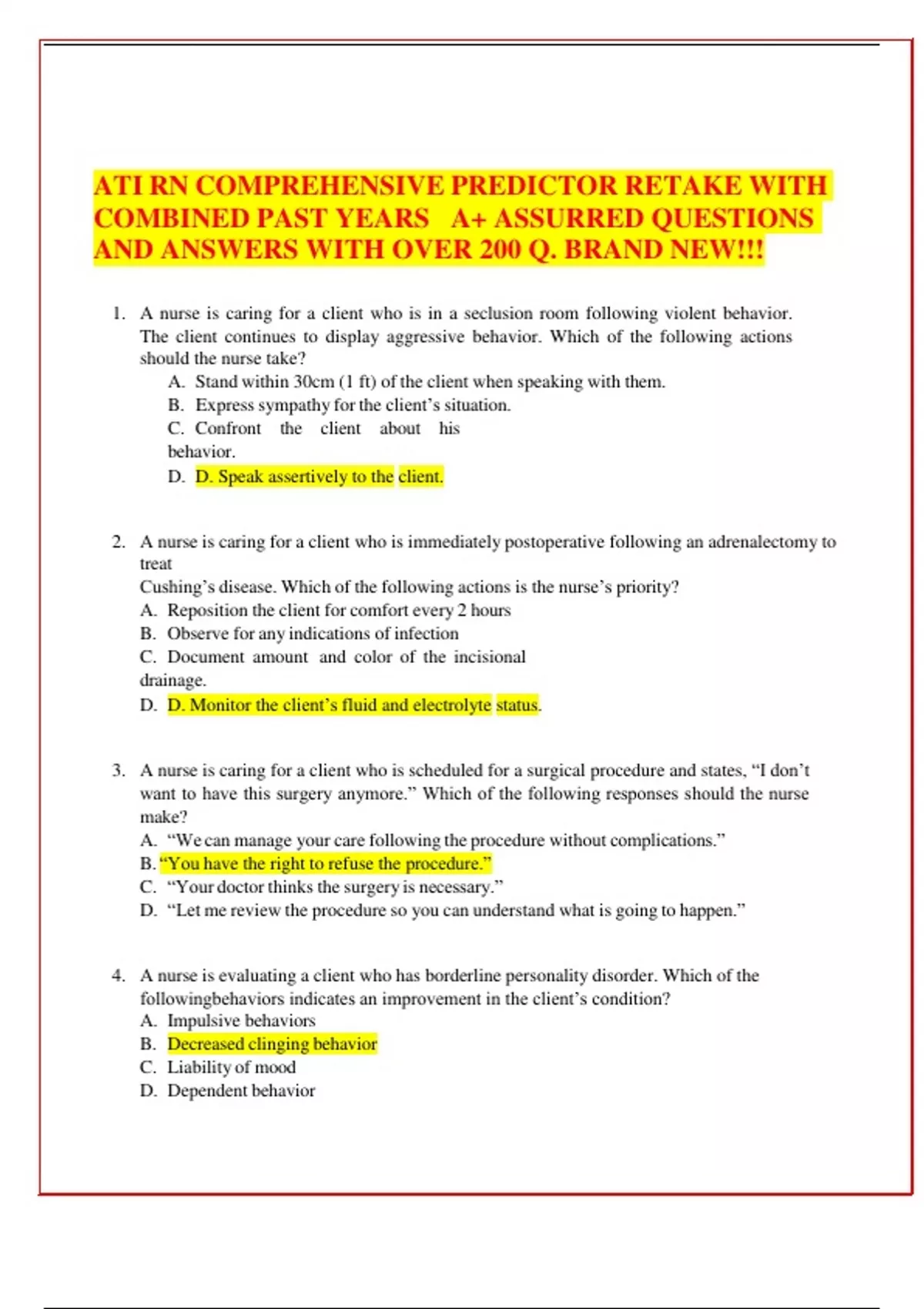 ATI RN COMPREHENSIVE PREDICTOR RETAKE WITH COMBINED PAST YEARS A+ ASSURRED QUESTIONS AND ANSWERS WITH OVER 200 Q. BRAND NEW!!!ATI RN COMPREHENSIVE PREDICTOR RETAKE WITH COMBINED PAST YEARS A+ ASSURRED QUESTIONS AND ANSWERS WITH OVER 200 Q. BRAND NEW!!!ATI RN COMPREHENSIVE PREDICTOR RETAKE WITH COMBINED PAST YEARS A+ ASSURRED QUESTIONS AND ANSWERS WITH OVER 200 Q. BRAND NEW!!!ATI RN COMPREHENSIVE PREDICTOR RETAKE WITH COMBINED PAST YEARS A+ ASSURRED QUESTIONS AND ANSWERS WITH OVER 200 Q. BRAND NEW!!!ATI RN COMPREHENSIVE PREDICTOR RETAKE WITH COMBINED PAST YEARS A+ ASSURRED QUESTIONS AND ANSWERS WITH OVER 200 Q. BRAND NEW!!!ATI RN COMPREHENSIVE PREDICTOR RETAKE WITH COMBINED PAST YEARS A+ ASSURRED QUESTIONS AND ANSWERS WITH OVER 200 Q. BRAND NEW!!!