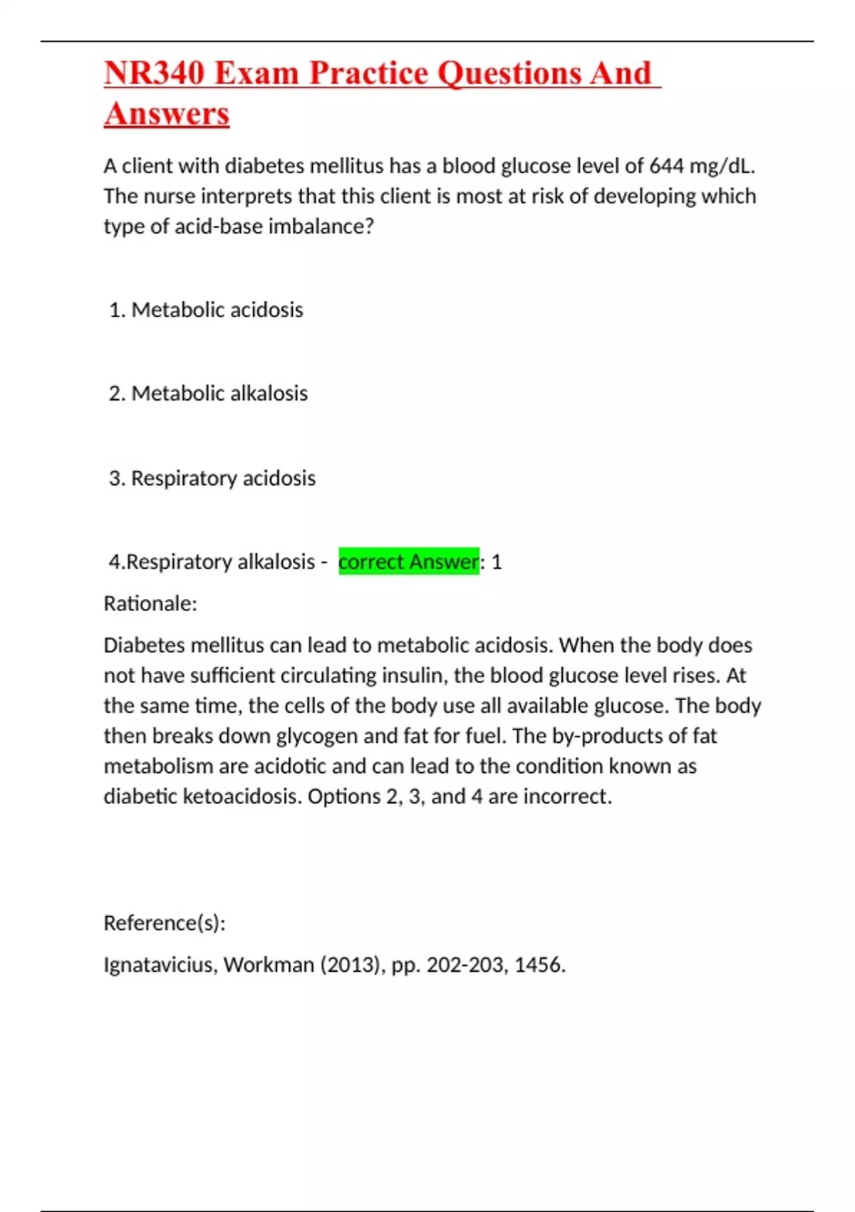NR340 Exam Practice Questions And Answers