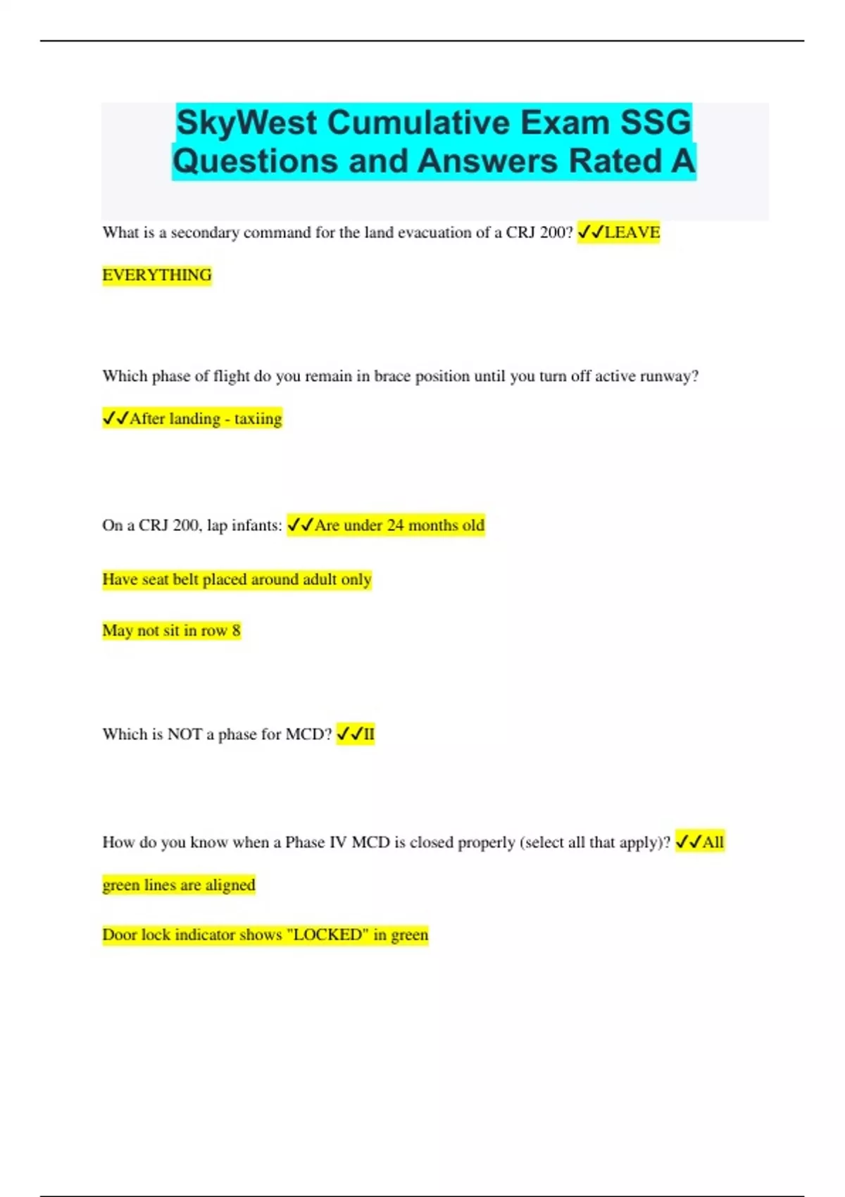 SkyWest Cumulative Exam SSG Questions and Answers Rated A