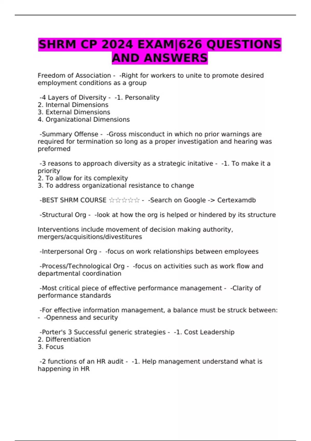 SHRM CP 2024 EXAM|626 QUESTIONS AND ANSWERS