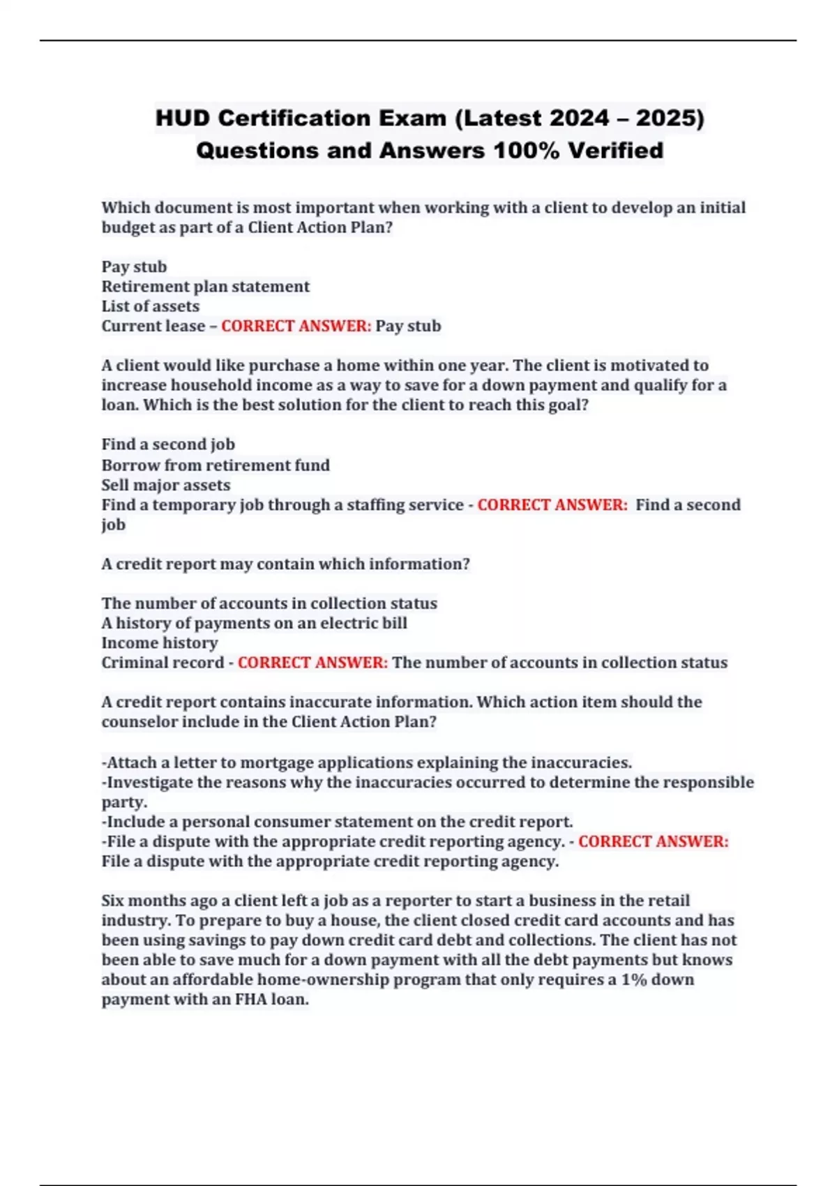 HUD Exams Study Bundle (Latest Update) With Complete Solutions