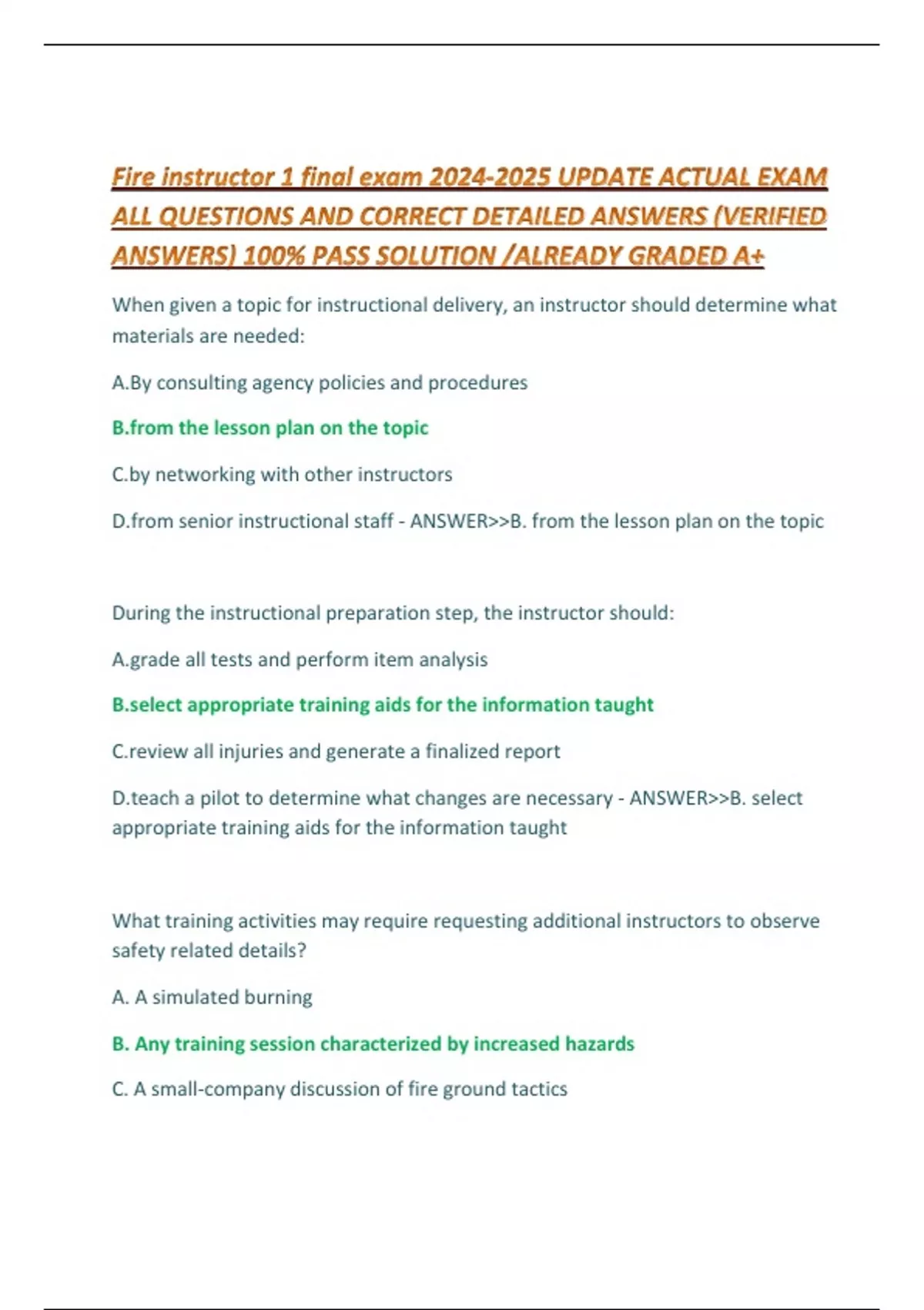Fire instructor 1 final exam UPDATE ACTUAL EXAM ALL QUESTIONS AND CORRECT DETAILED ANSWERS (VERIFIED ANSWERS) 100% PASS SOLUTION /ALREADY GRADED A+