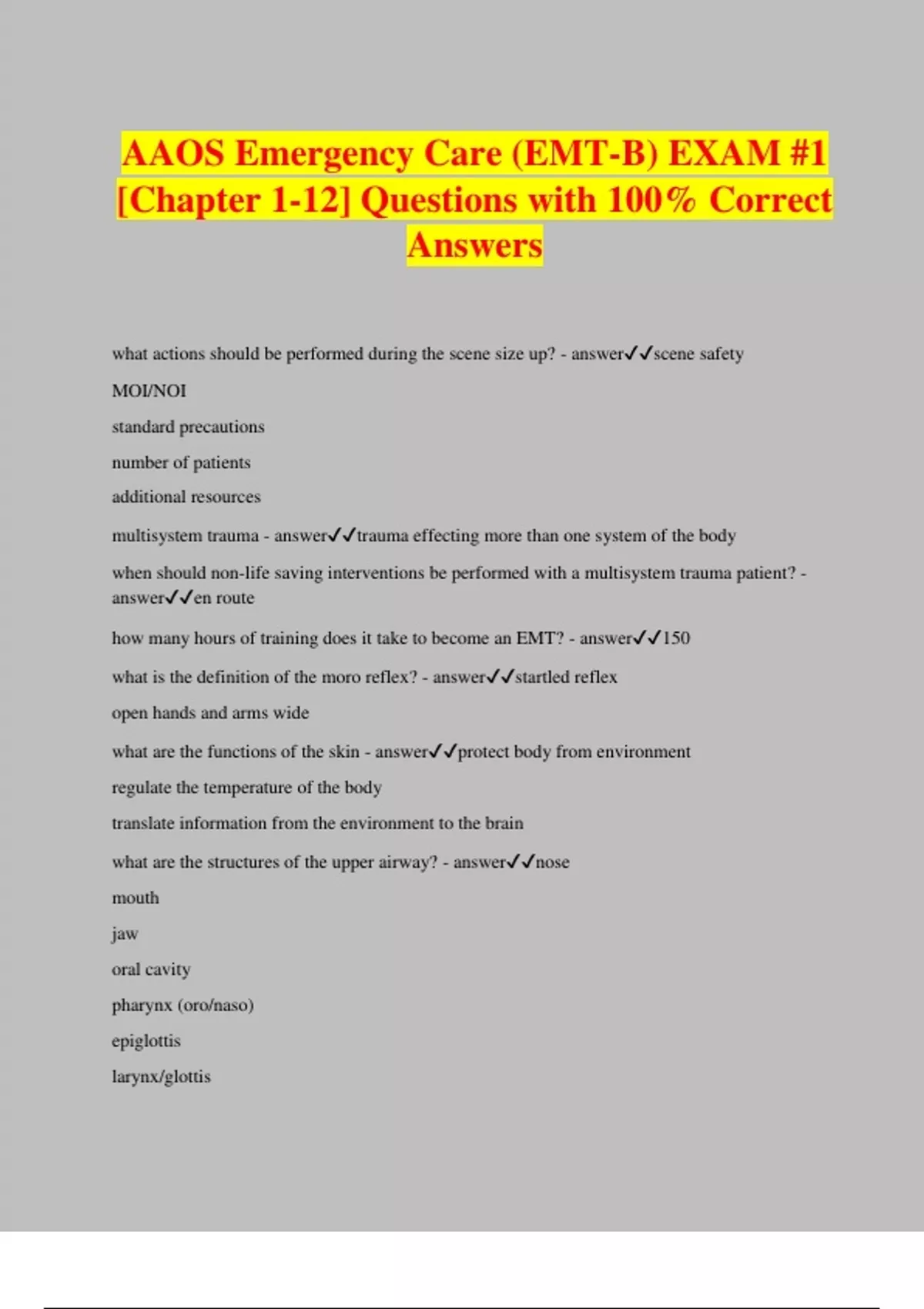 AAOS Emergency Care (EMT-B) EXAM #1 [Chapter 1-12] Questions with 100% Correct Answers