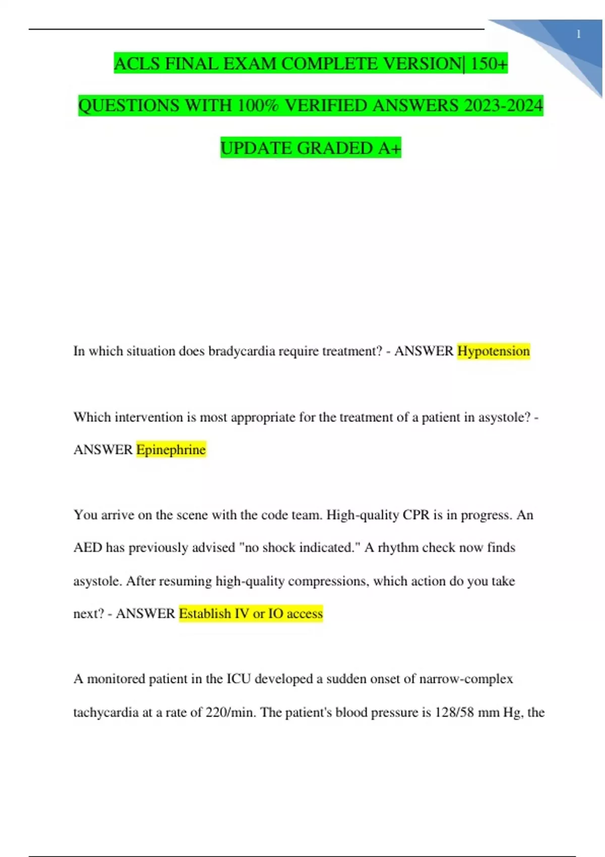 ACLS FINAL EXAM COMPLETE VERSION| 150+ QUESTIONS WITH 100% VERIFIED ANSWERS UPDATE GRADED A+ /ACLS FINAL EXAM COMPLETE VERSION| 150+ QUESTIONS WITH 100% VERIFIED ANSWERS UPDATE GRADED A+ /ACLS FINAL EXAM COMPLETE VERSION| 150+ QUESTIONS WITH 100% VERIFIED ANSWERS UPDATE GRADED A+ /ACLS FINAL EXAM COMPLETE VERSION| 150+ QUESTIONS WITH 100% VERIFIED ANSWERS UPDATE GRADED A+