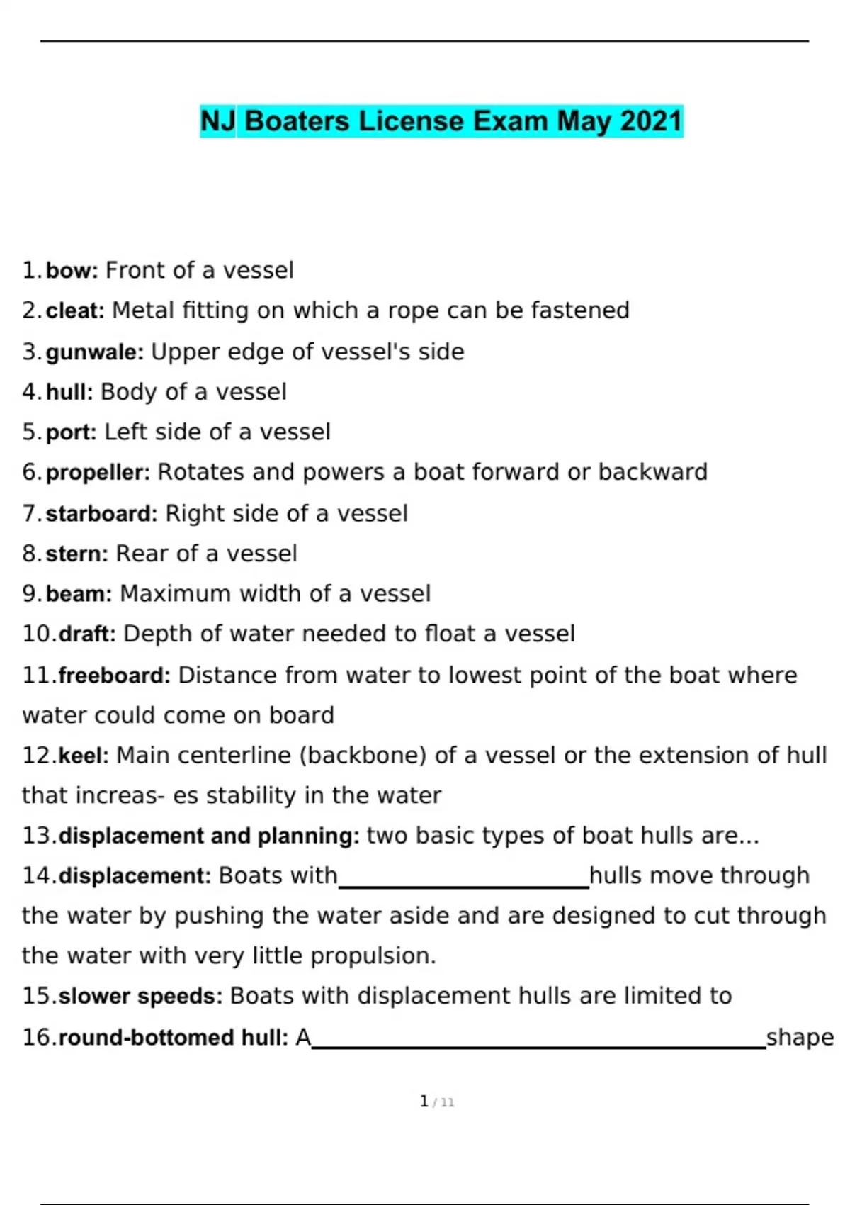 NJ Boaters License Exam May 2021