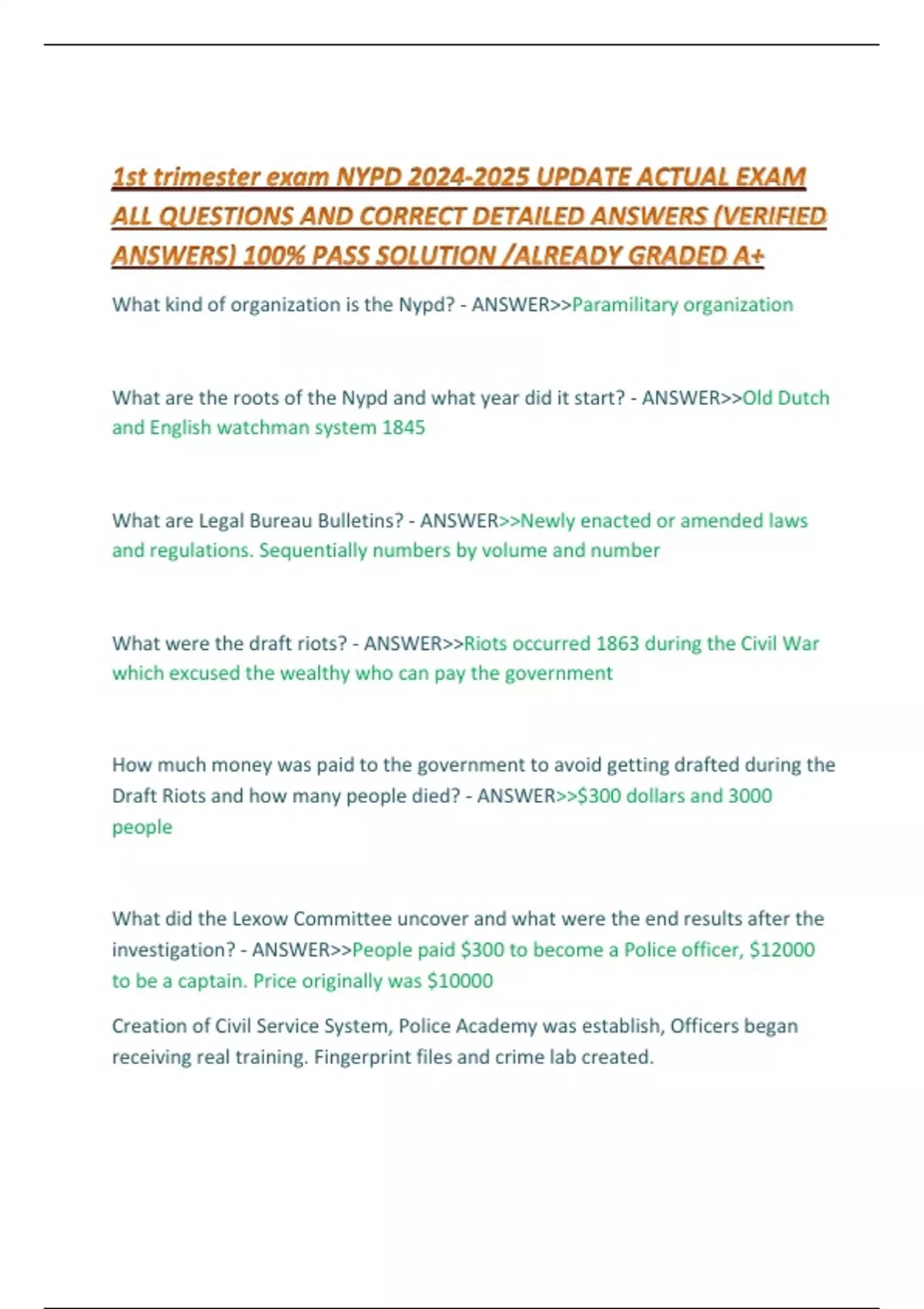 1st trimester exam NYPD UPDATE ACTUAL EXAM ALL QUESTIONS AND CORRECT DETAILED ANSWERS (VERIFIED ANSWERS) 100% PASS SOLUTION /ALREADY GRADED A+