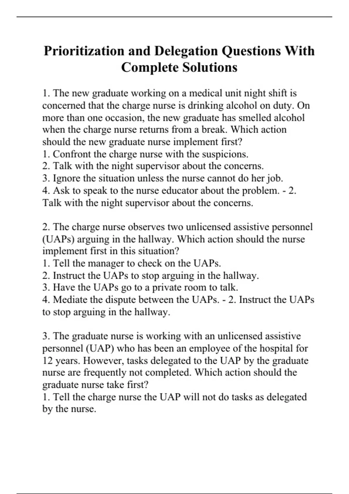 Prioritization and Delegation Questions With Complete Solutions