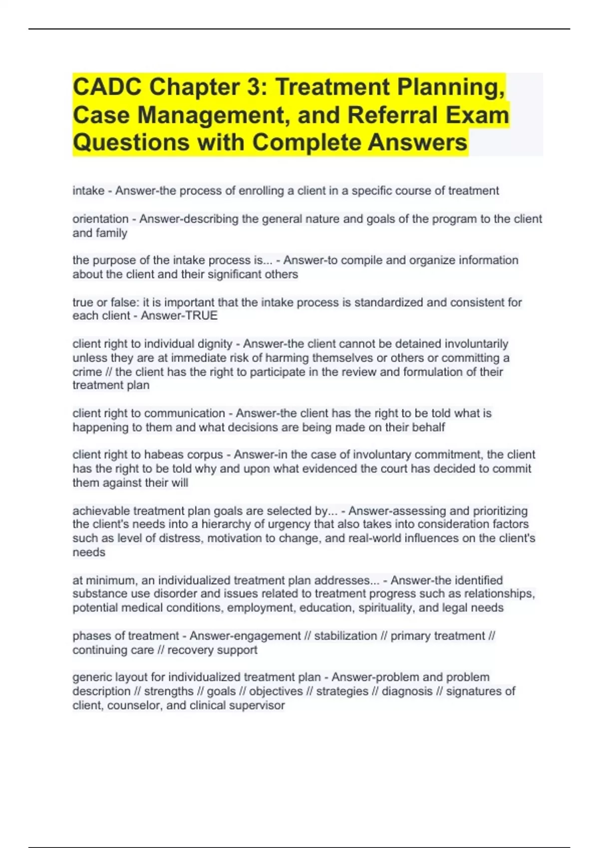 intake - Answer-the process of enrolling a client in a specific course of treatment