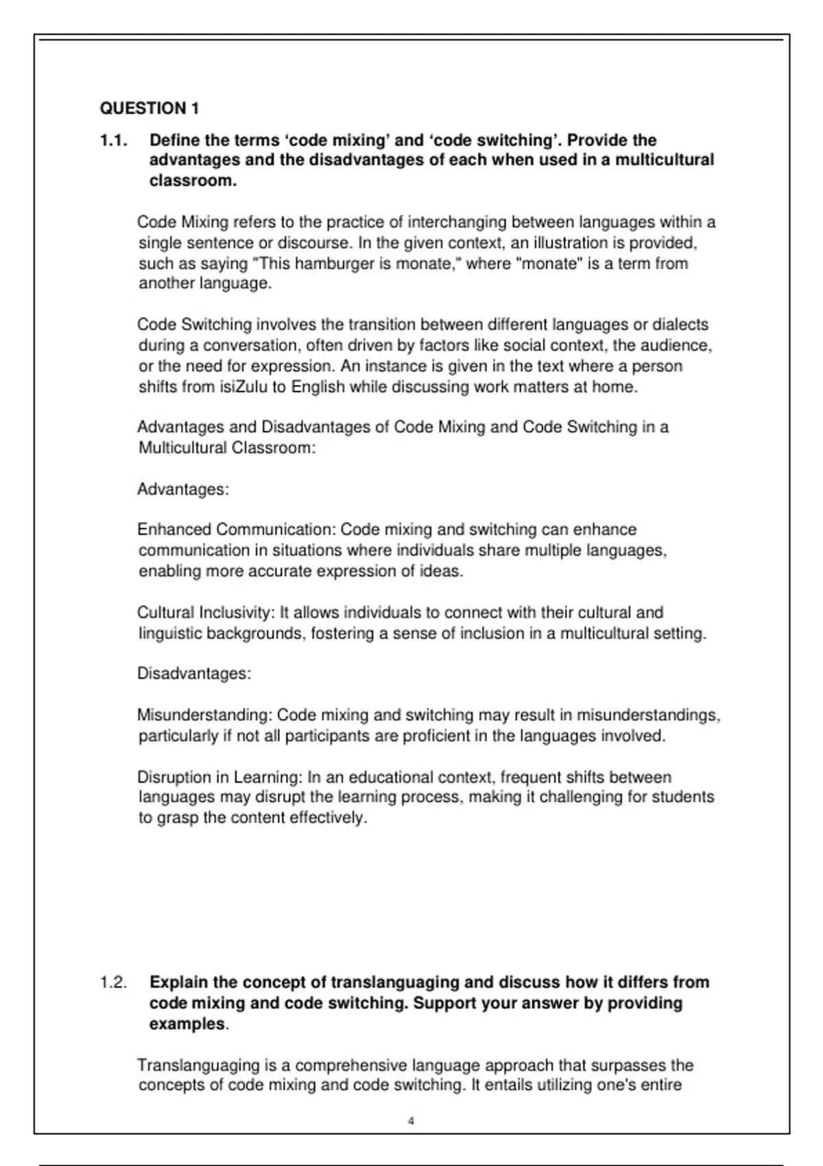5. Question 1