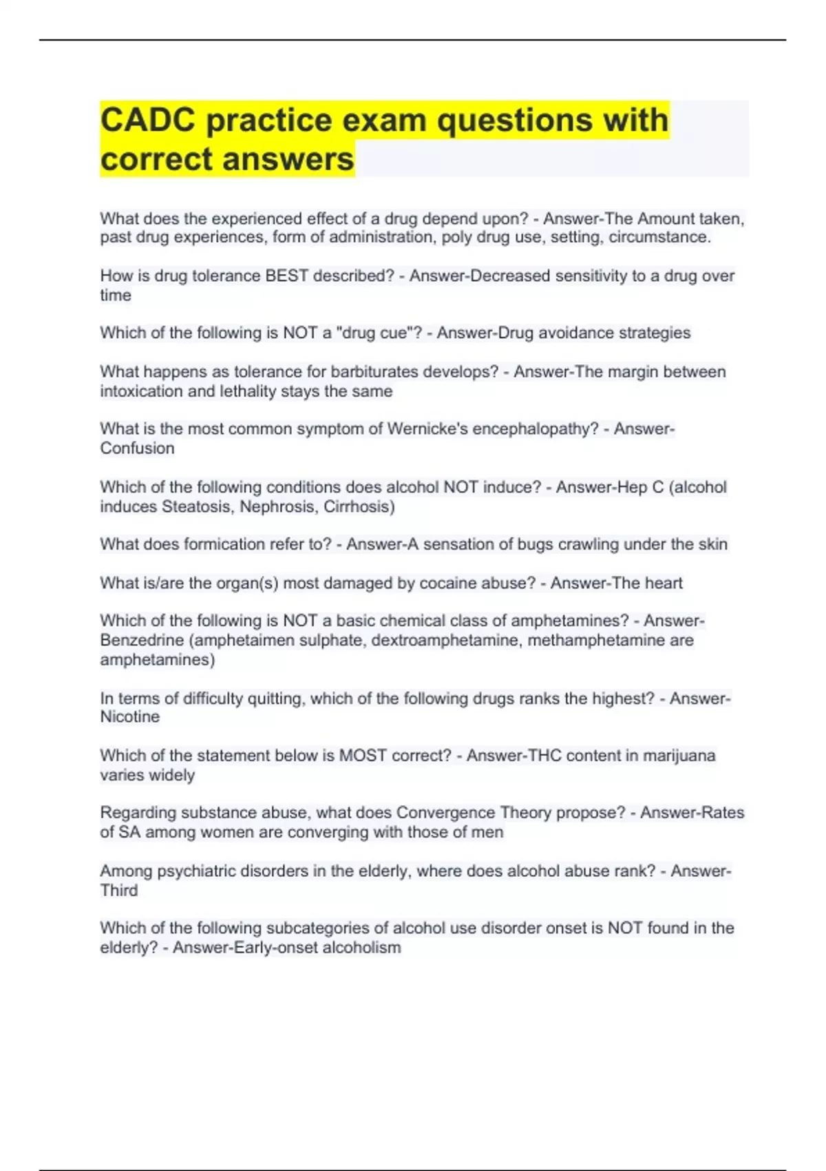 Which of the statement below is MOST correct? - Answer-THC content in marijuana