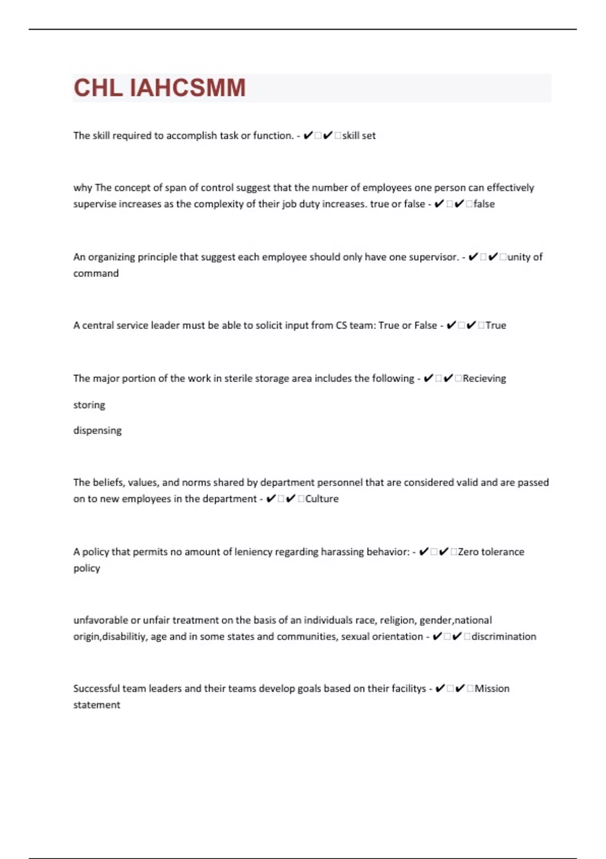 CHL IAHCSMM 150 Questions with 100% Correct Answers | Verified | Updated 2024