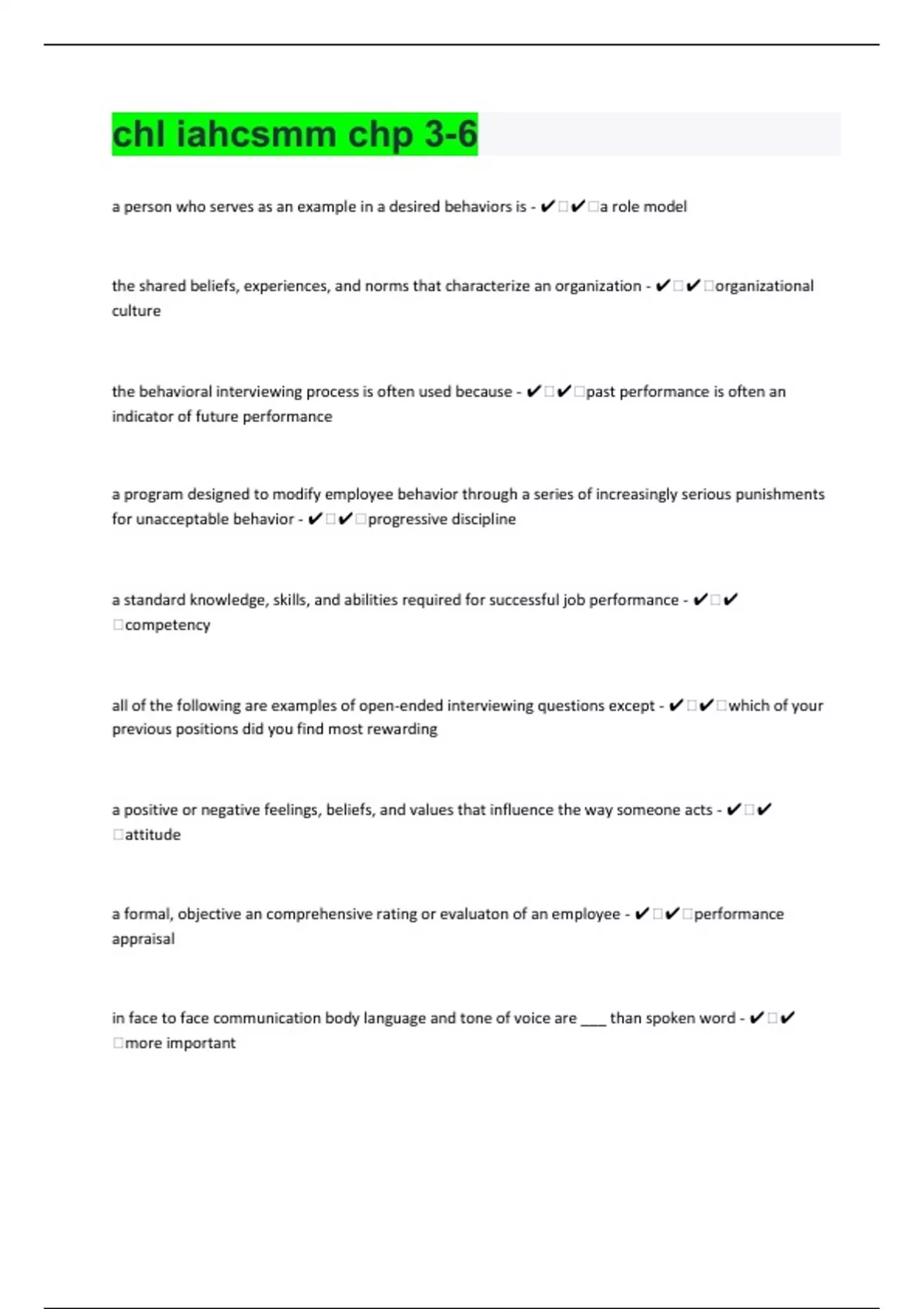 chl iahcsmm chp 3-6|40 Questions with 100% Correct Answers | Updated 2024 | Guaranteed A+