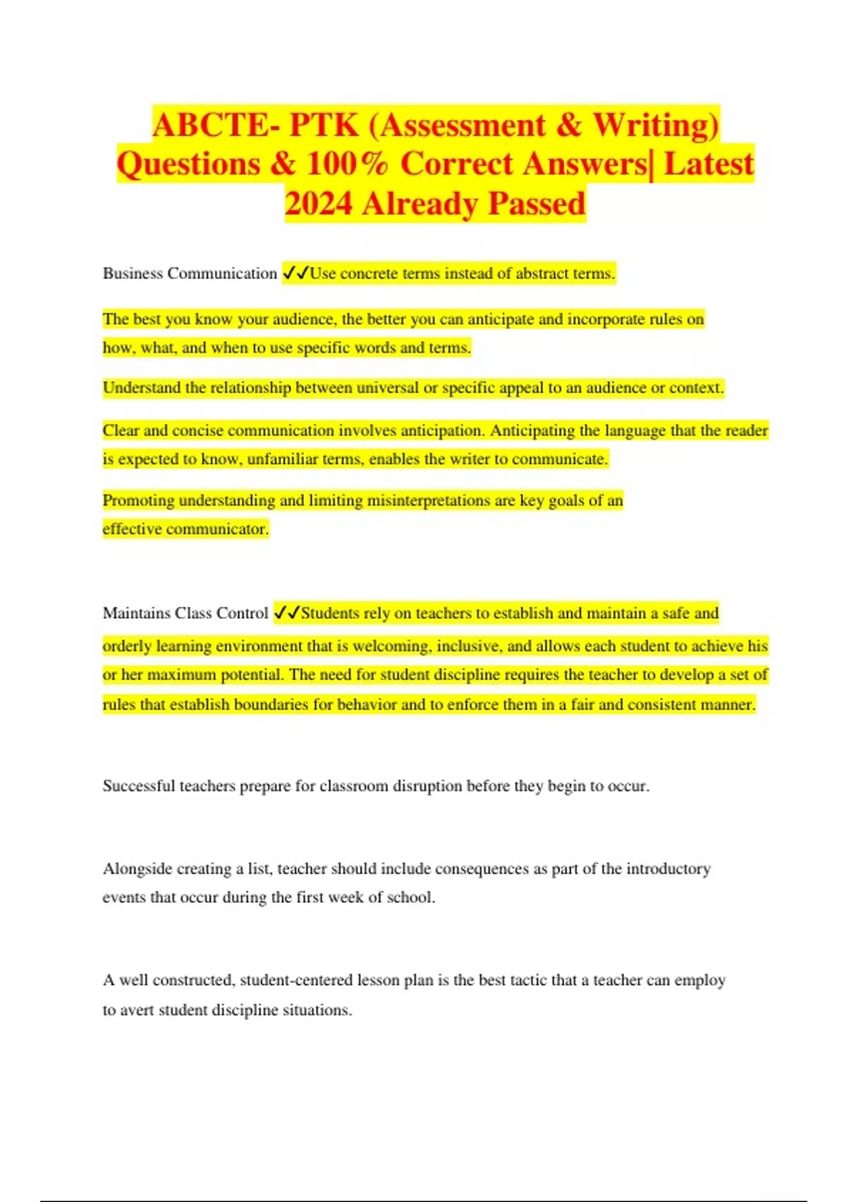 ABCTE- PTK (Assessment & Writing) Questions & 100% Correct Answers| Latest 2024 Already Passed