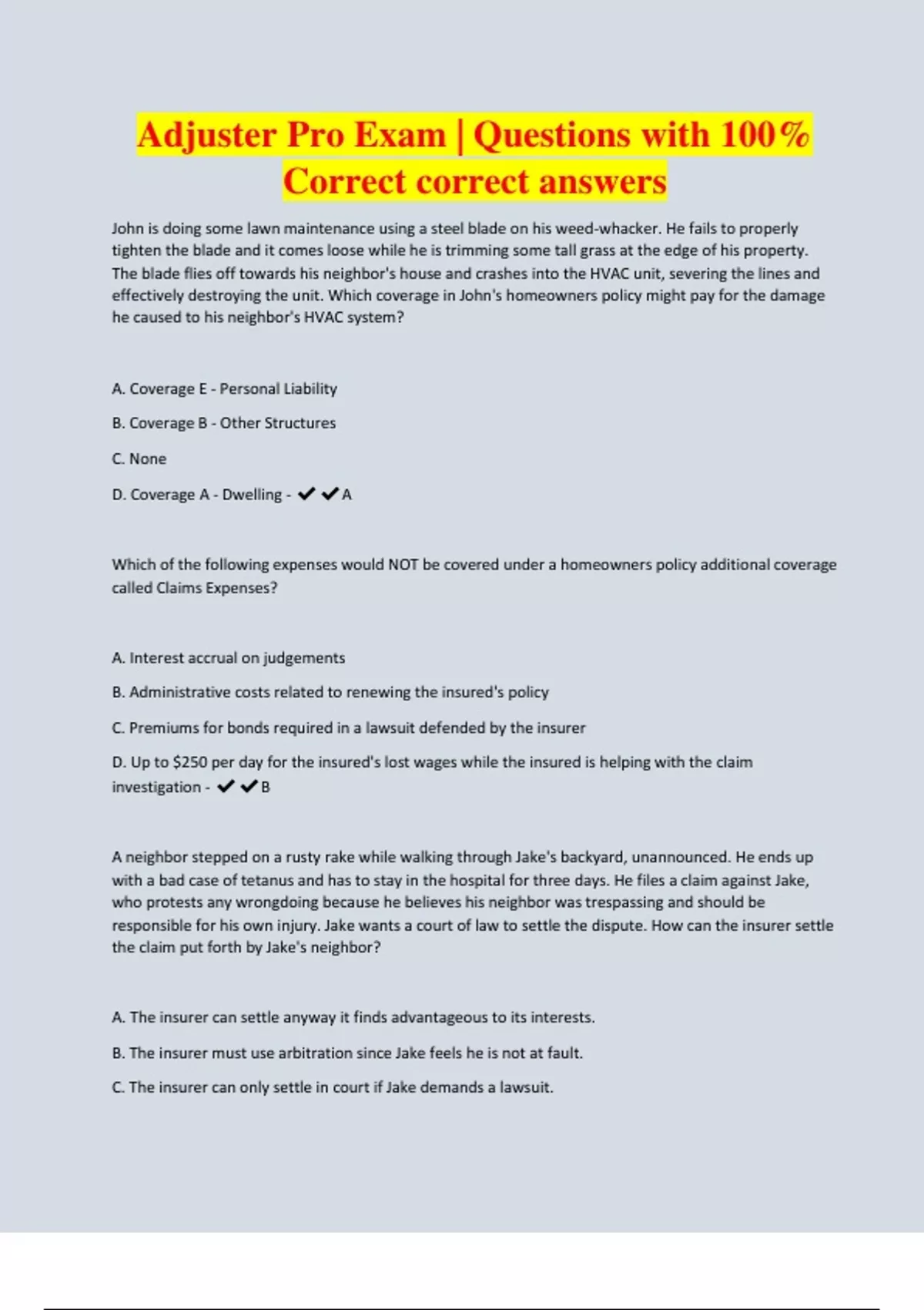 Adjuster Pro Exam | Questions with 100% Correct correct answers
