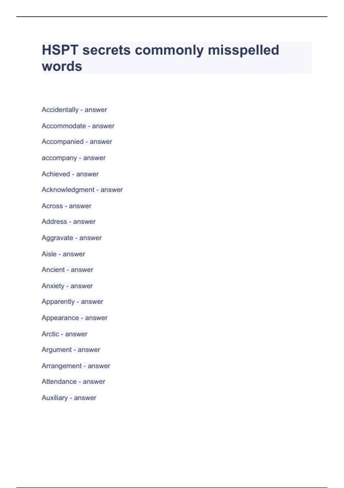 HSPT secrets commonly misspelled words Questions with correct Answers 2024