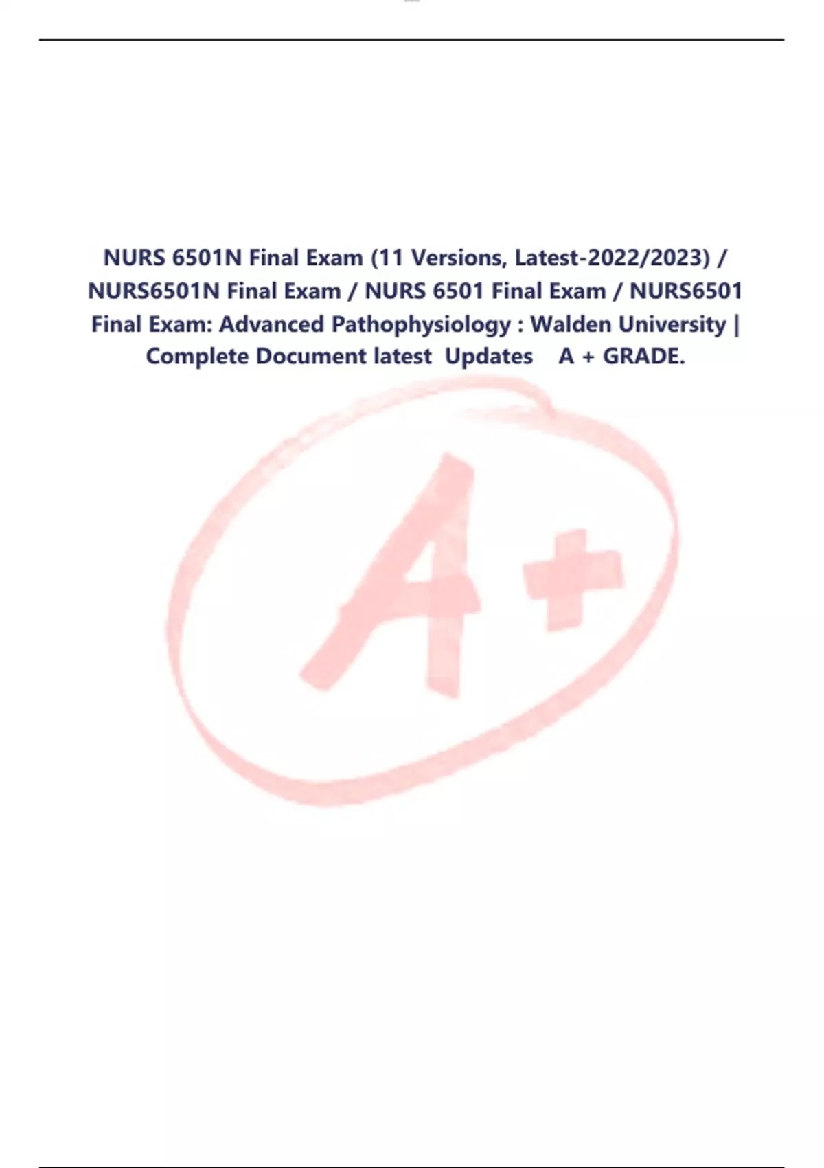 NURS 6501N Final Exam (11 Versions, Latest-2022/2023) / NURS6501N Final Exam / NURS 6501 Final Exam / NURS6501 Final Exam: Advanced Pathophysiology : Walden University | Complete Document latest Updates A + GRADE.