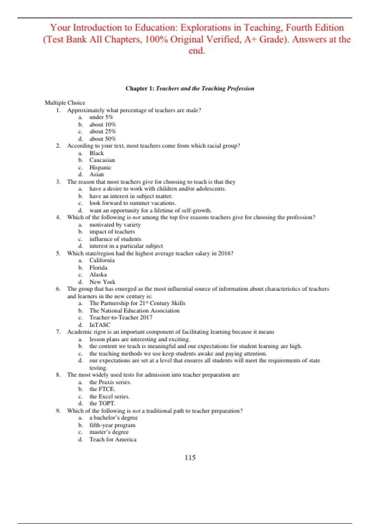 Test Bank For Your Introduction to Education Explorations in Teaching 4th Edition By Sara Powell (All Chapters, 100% Original Verified, A+ Grade) Test Bank For Your Introduction to Education Explorations in Teaching 4e By Sara Powell (All Chapters, 100% Original Verified, A+ Grade)