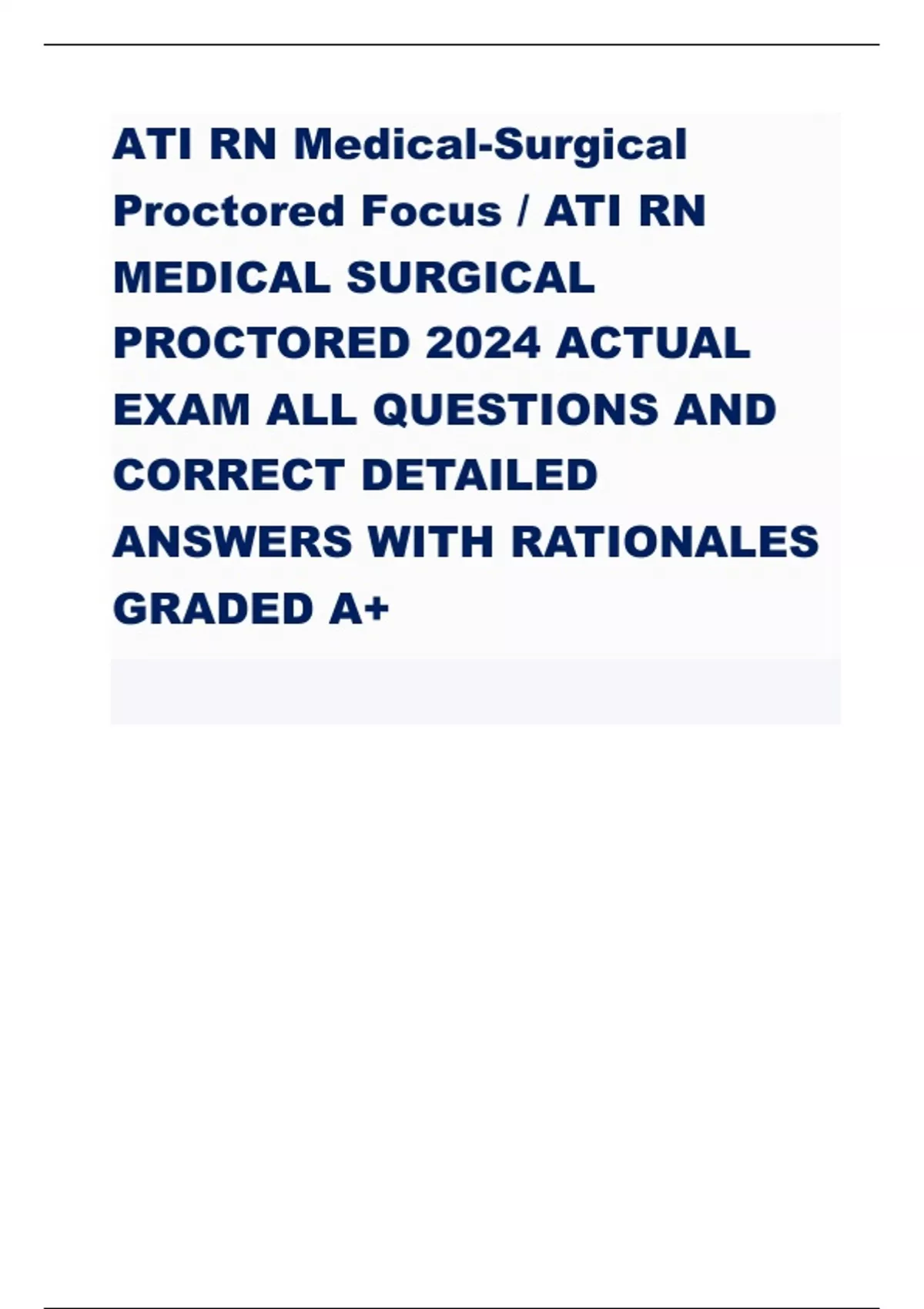 ATI RN Medical-Surgical Proctored Focus / ATI RN MEDICAL SURGICAL PROCTORED 2024 ACTUAL EXAM ALL QUESTIONS AND CORRECT DETAILED ANSWERS WITH RATIONALES GRADED A+
