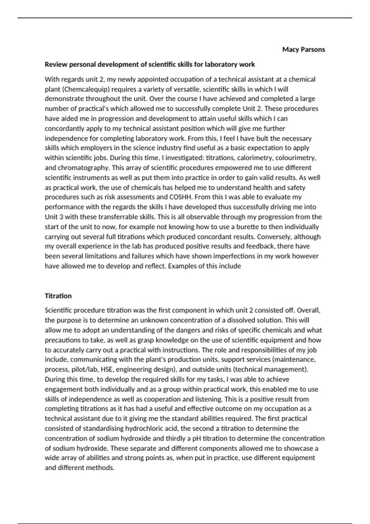 Assignment 4 - Review personal development of scientific skills for laboratory work