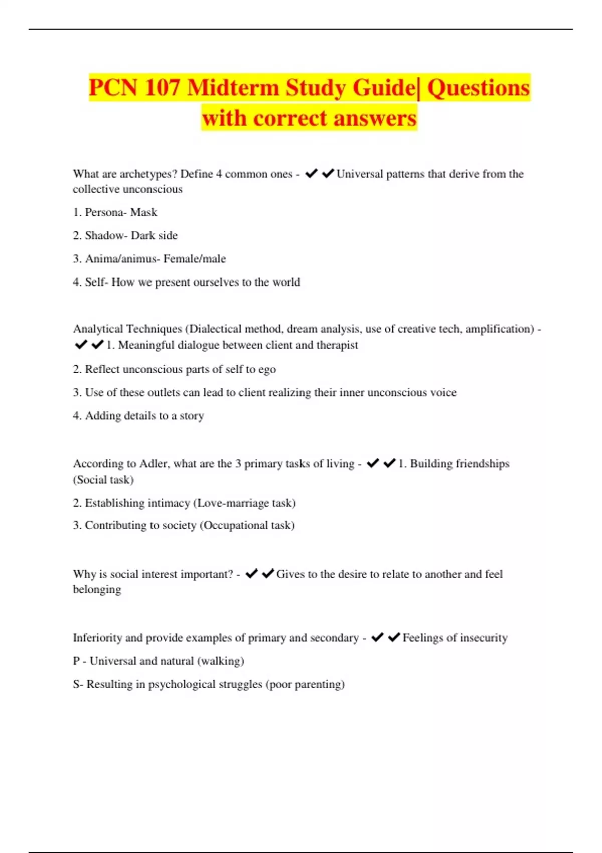 PCN 107 Midterm Study Guide| Questions with correct answers