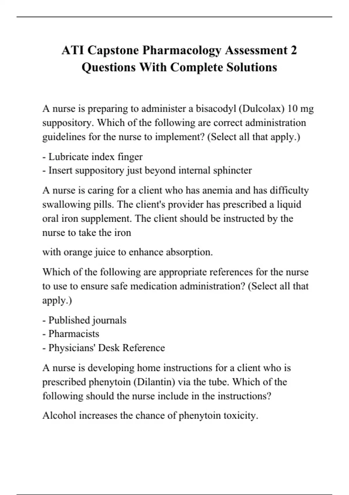 ATI Capstone Pharmacology Assessment 2 Questions With Complete Solutions