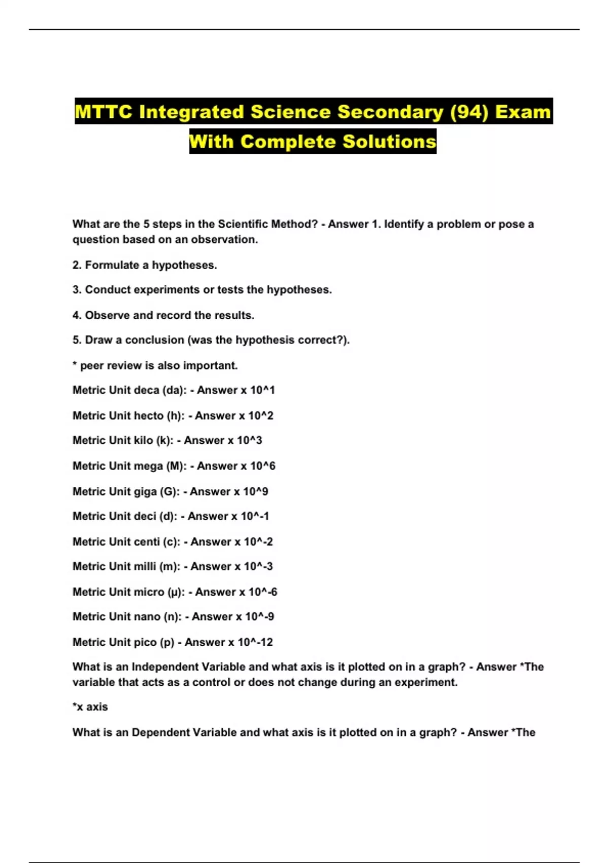 MTTC Integrated Science Secondary (94) Exam With Complete Solutions...