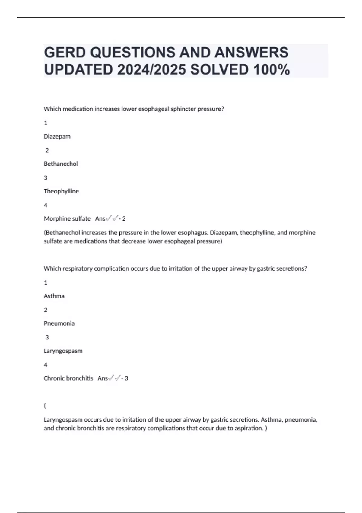 GERD QUESTIONS AND ANSWERS UPDATED 2024/2025 SOLVED 100%