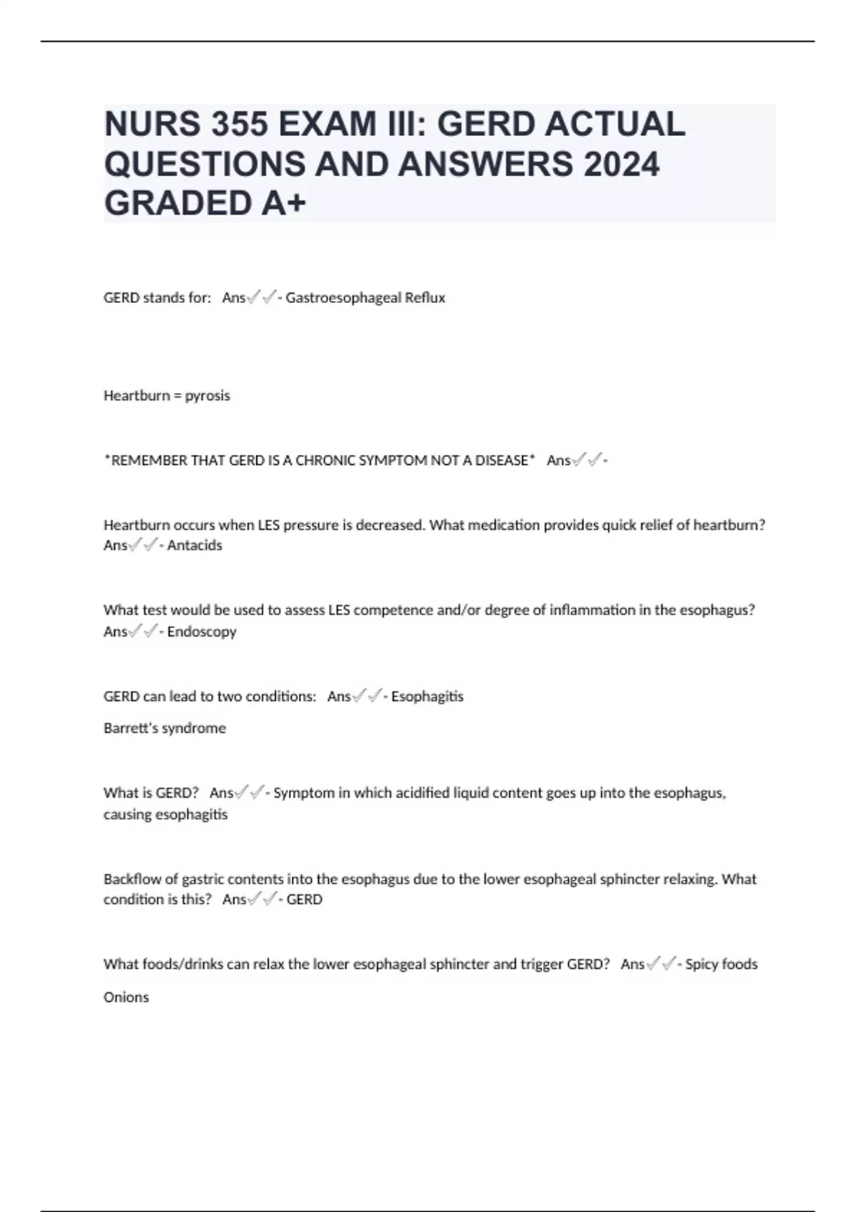 NURS 355 EXAM III: GERD ACTUAL QUESTIONS AND ANSWERS 2024 GRADED A+