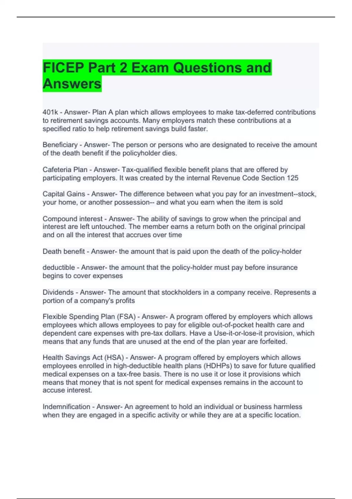ficep part 2 exam questions and answers