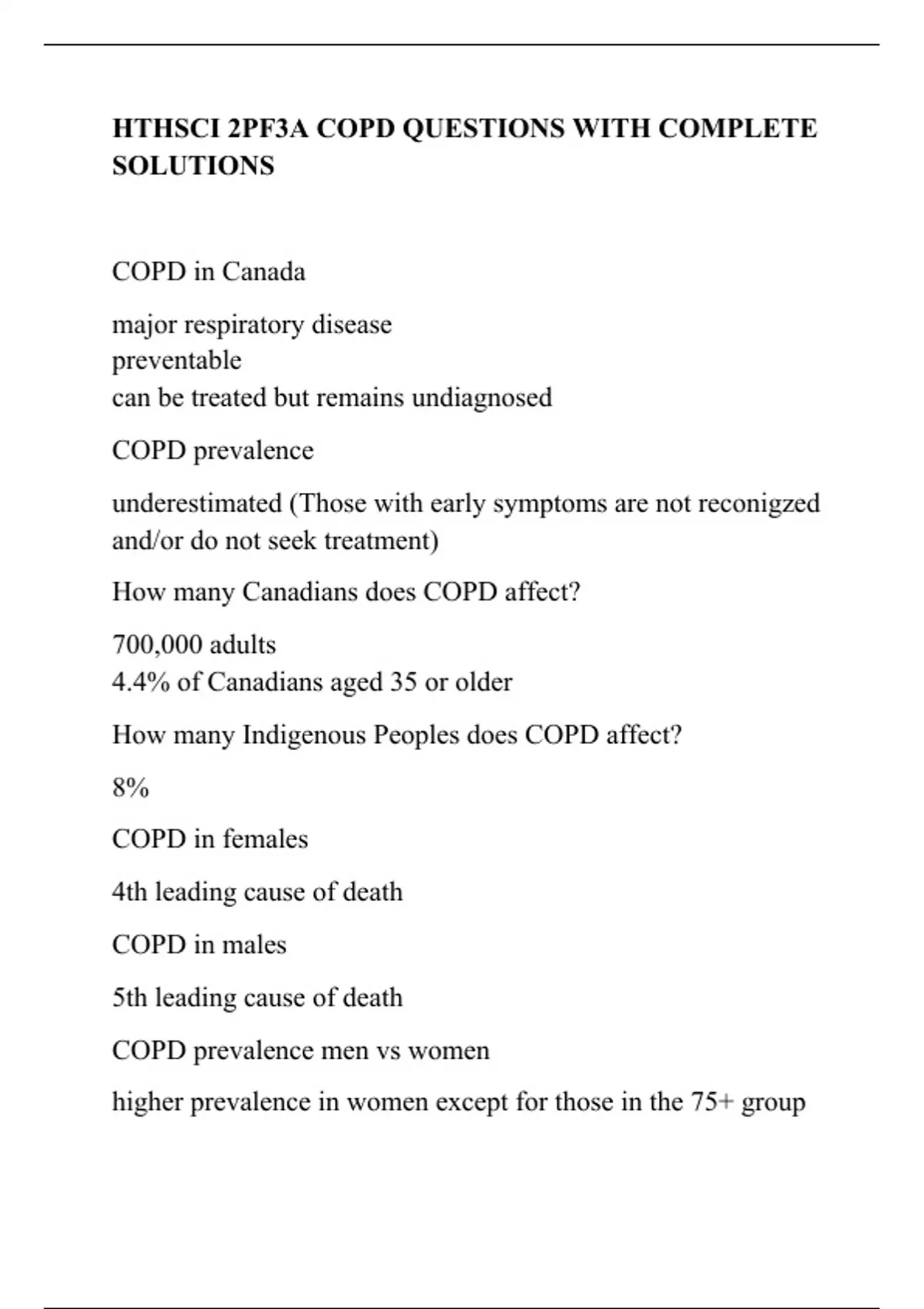 HTHSCI 2PF3A COPD QUESTIONS WITH COMPLETE SOLUTIONS