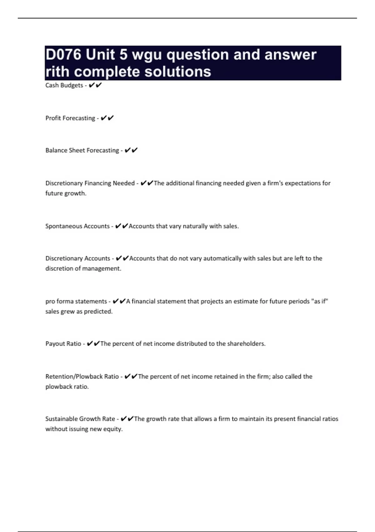 D076 Unit 5 wgu question and answer rith complete solutions